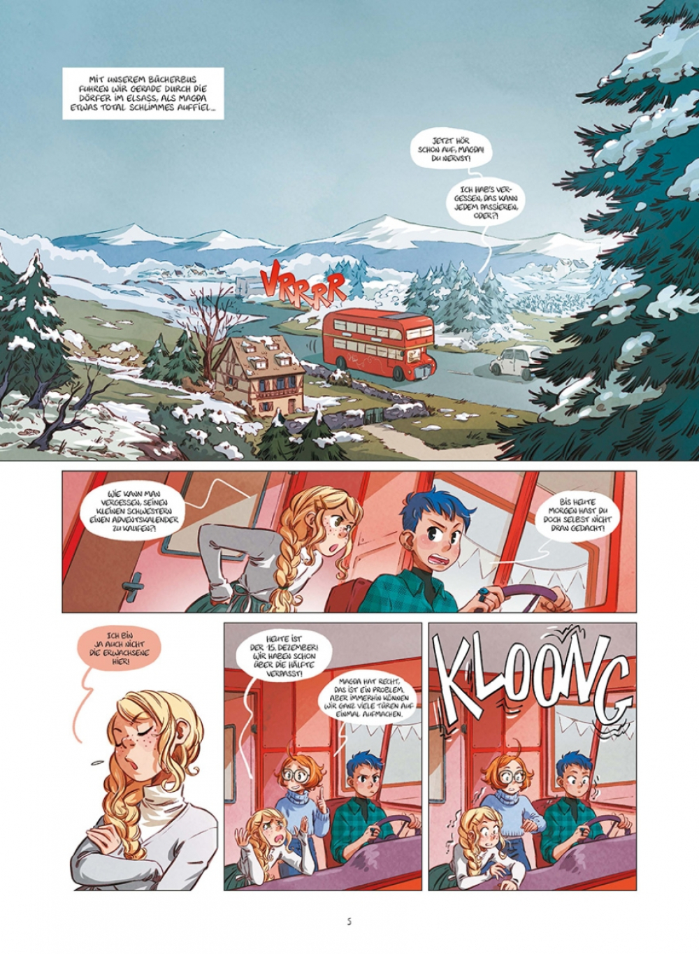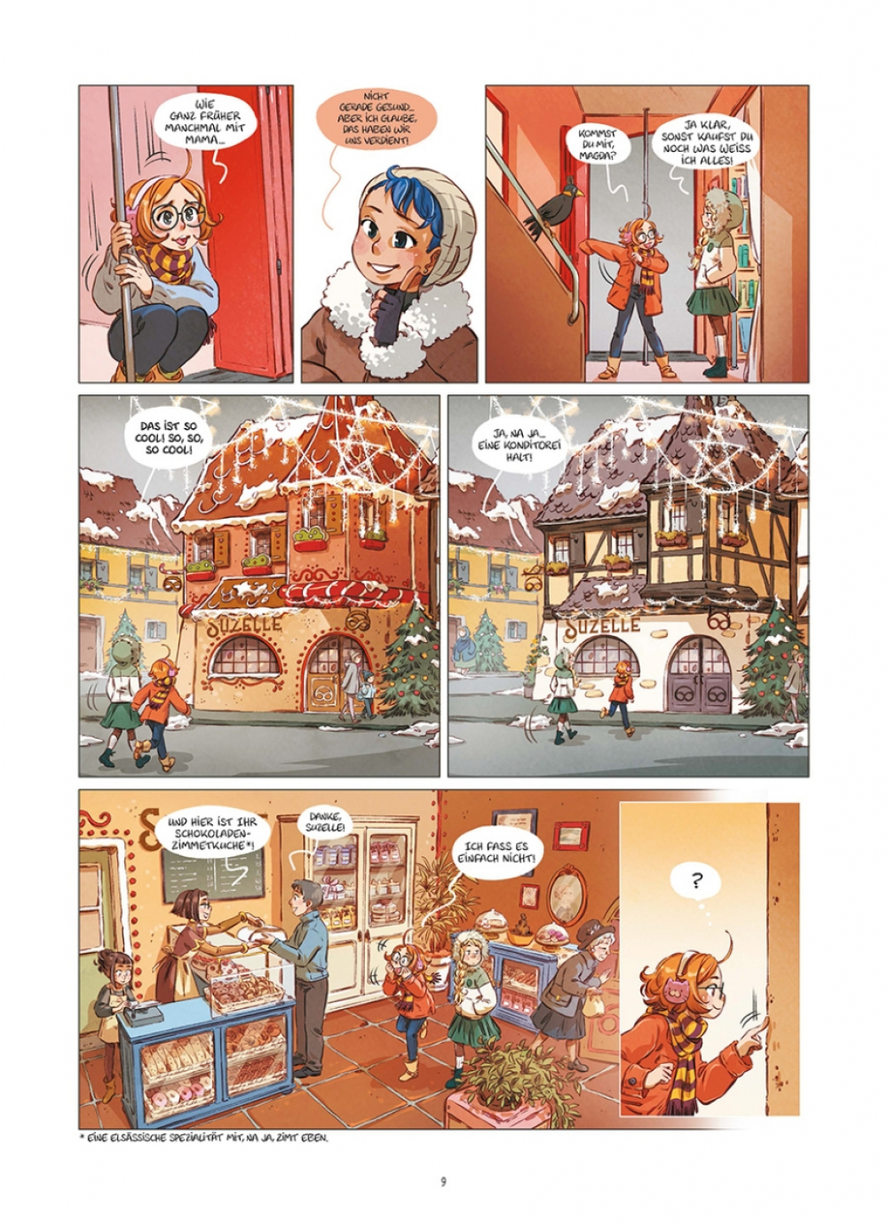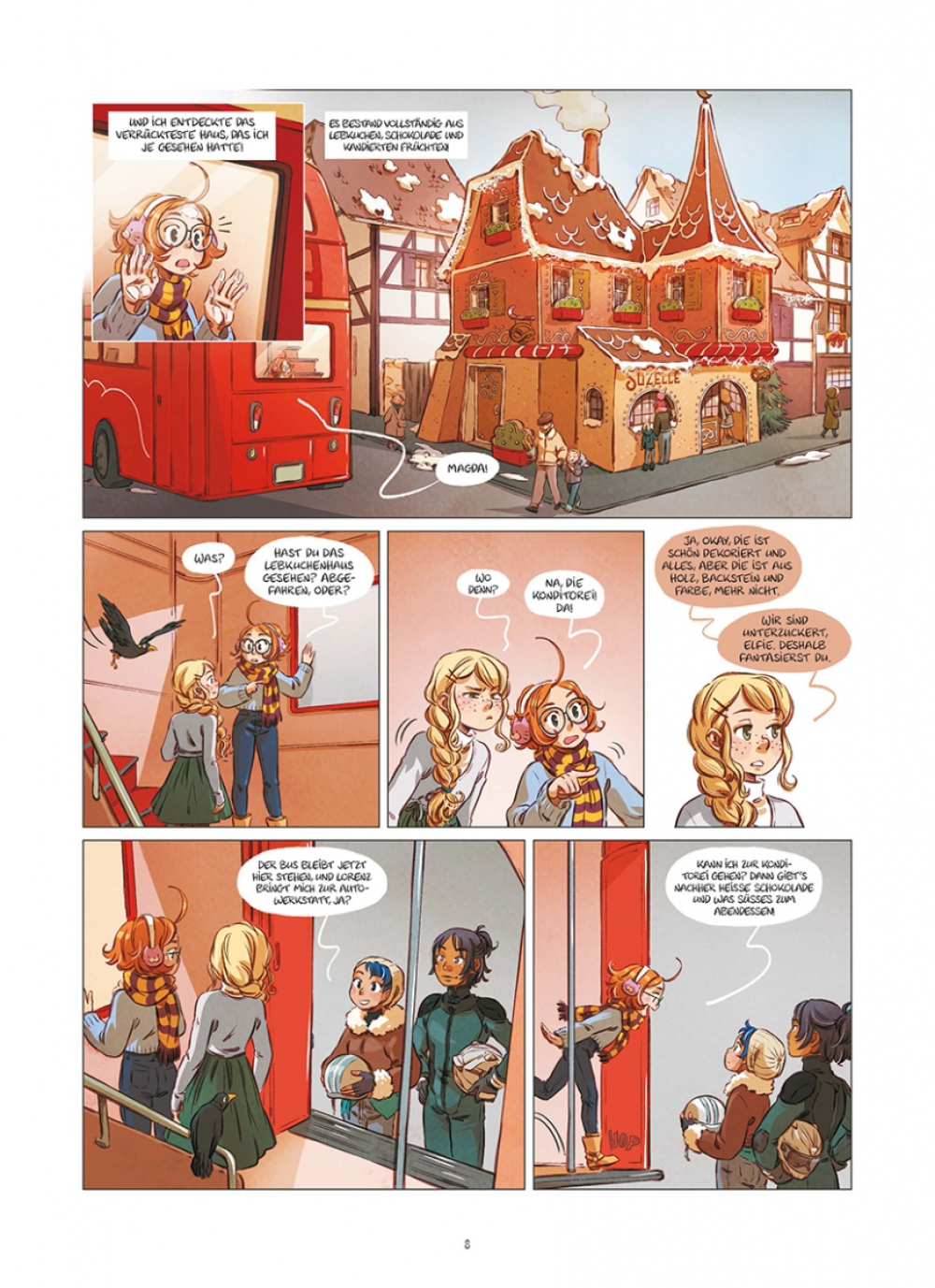 Kurz vor Weihnachten stranden Elfie und ihre Schwestern wegen einer Panne mit ihrem Bücherbus im Elsass. Elfie macht dort eine wunderbare Entdeckung: Sie ist nicht die einzige Nachwuchshexe! Auch die Tochter der Dorfbäckerin, Faustine, kann zaubern! Elfies Begeisterung kriegt jedoch schon bald einen Dämpfer, denn Faustine ist eine unverbesserliche Chaotin, die ständig in die unmöglichsten Situationen gerät und dann auf Elfies Hilfe angewiesen ist. Und als wären Faustines Durcheinander, ein nahender Schneesturm und aggressive Lebkuchenmännlein nicht schon genug, stößt Elfie auch noch auf ein Familiengeheimnis aus dem Zweiten Weltkrieg, welches das Dorf ordentlich auf den Kopf stellen könnte...
