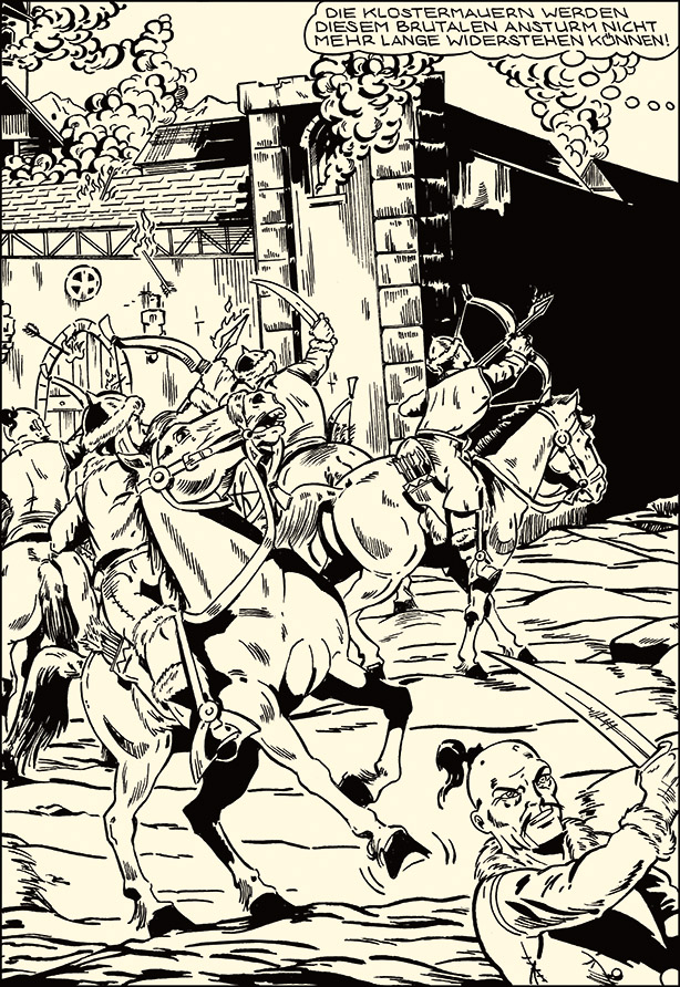 Ein Bogenschütze des tyrannischen Herzogs ist einem Mann auf den Fersen, der ein in eine Decke gehülltes Baby in einem Kloster abgeben möchte. Bevor er noch die Pfortenglocke läuten kann, trifft ihn ein Pfeil im Rücken. Eine spannende Geschichte beginnt…