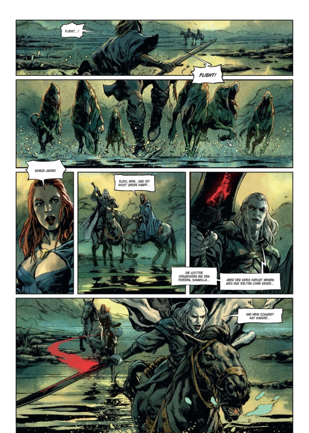 Die tragische Saga von Elric, dem düsteren Helden aus der Feder von Fantasy-Großmeister Michael Moorcock, ist noch nicht zu Ende erzählt! Im zweiten Zyklus der monumentalen Comic-Adaption übernimmt Valentin Sécher die zeichnerische Leitung der Serie und hebt das Kultwerk auf eine neue Stufe – stets voller Respekt gegenüber dem Original und mit dem Segen von Moorcock höchstpersönlich. »Elric« ist die Referenz in Sachen Dark Fantasy!