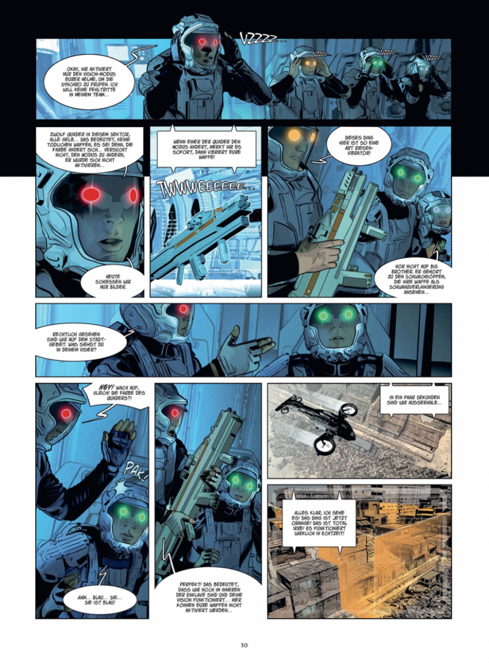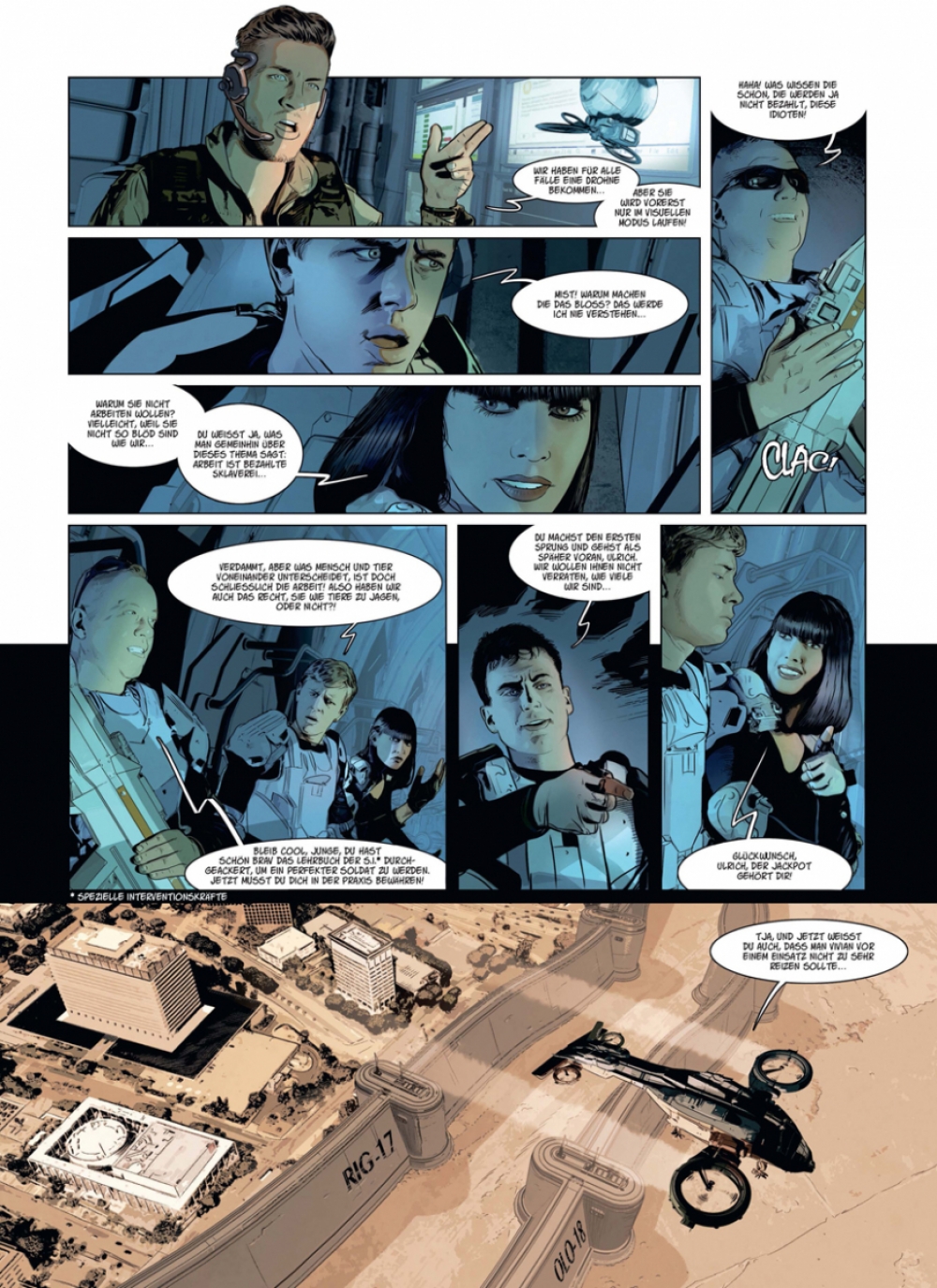 So haben wir uns die Zukunft nicht vorgestellt: Die »freie Welt«, das sind schwer bewachte, hoch gerüstete Enklaven, in denen sich die Reichen und Mächtigen abschotten. Und um sie herum, in den sogenannten »Territorien«, kämpfen die Ausgegrenzten, Abgehängten um ihre erbärmliche Existenz. Dort herrschen Rechtlosigkeit und Anarchie und über allem »spezielle Interventionskräfte «, deren Hauptaufgabe es ist, die Dominanz der Enklaven mit allen Mitteln zu sichern... und sich dafür gegebenenfalls auch gnadenlos verheizen zu lassen, gegen das vage Versprechen, vielleicht eines Tages selbst zu den Auserwählten zu gehören. Eine düstere, verschachtelte Dystopie, die eine Welt unter höchster Anspannung zeigt. Ein Funke genügt, und es kommt zur Explosion...