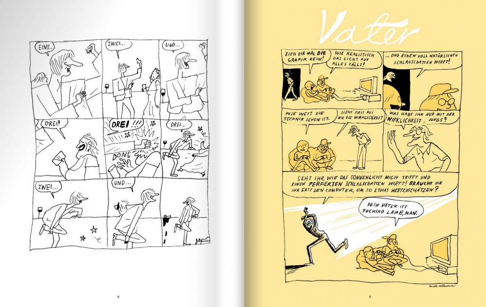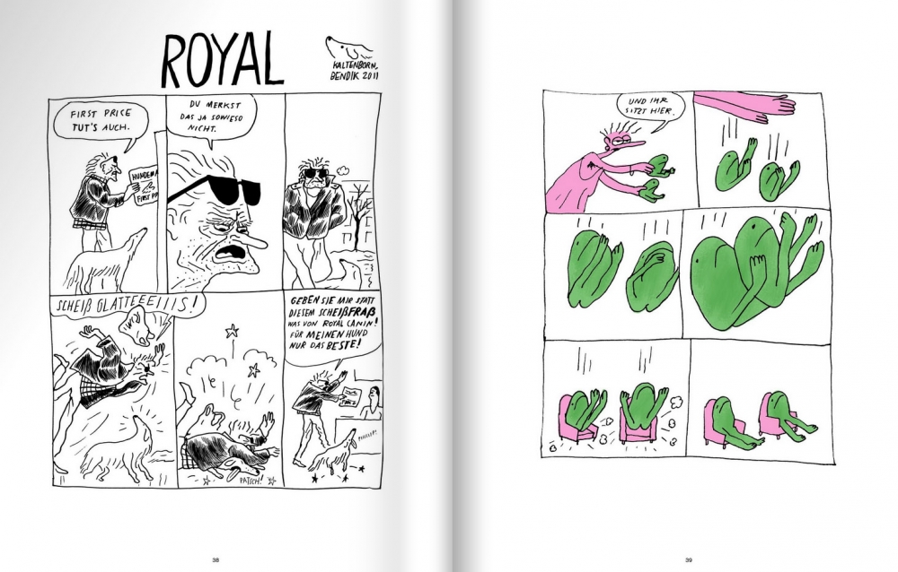 befinden wir uns in der aberwitzigen Fantasie des norwegischen Allround-Talents Bendik Kaltenborn. Die Welt in Erste Sahne ist eine Parallelwirklichkeit, in der oftmals nur ein einziges Element das Universum aus dem fragilen Gleichgewicht bringt. Eine kleine Überspitzung, ein unerwarteter Ausspruch, und wir blicken hinab in die Wirrungen der menschlichen Seele.