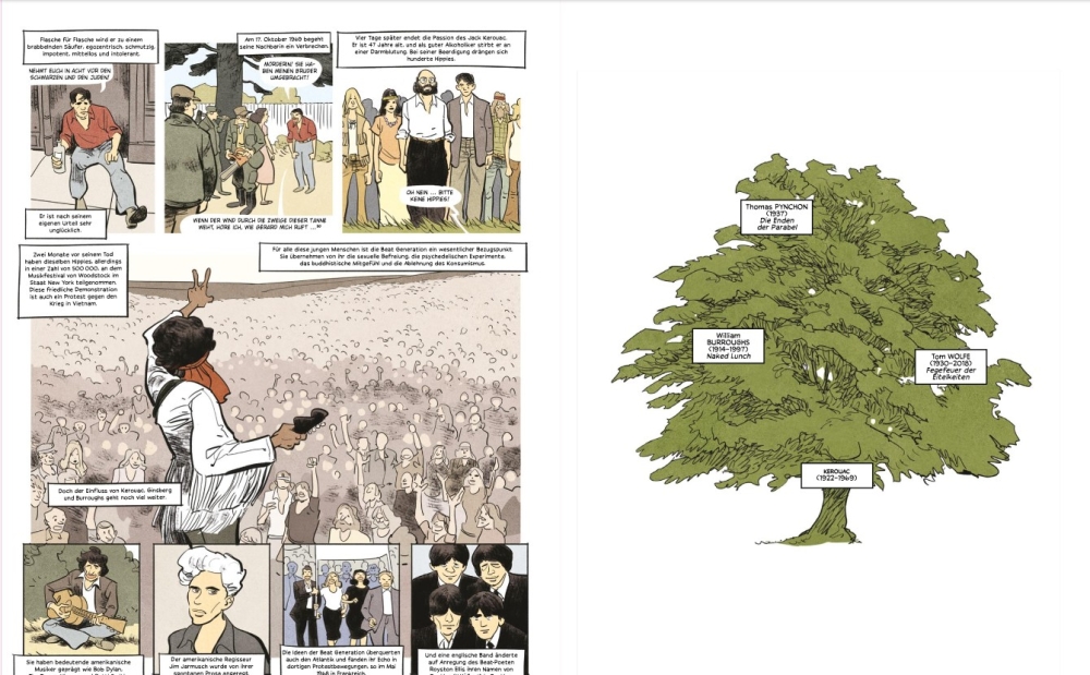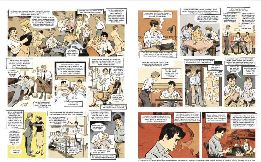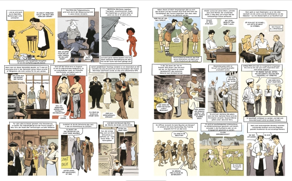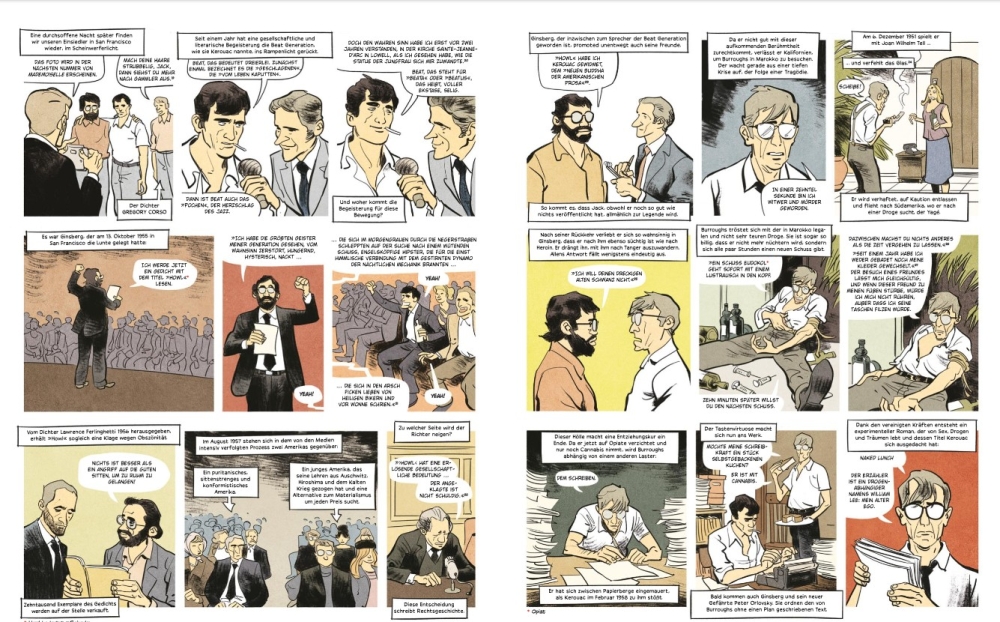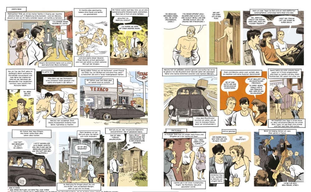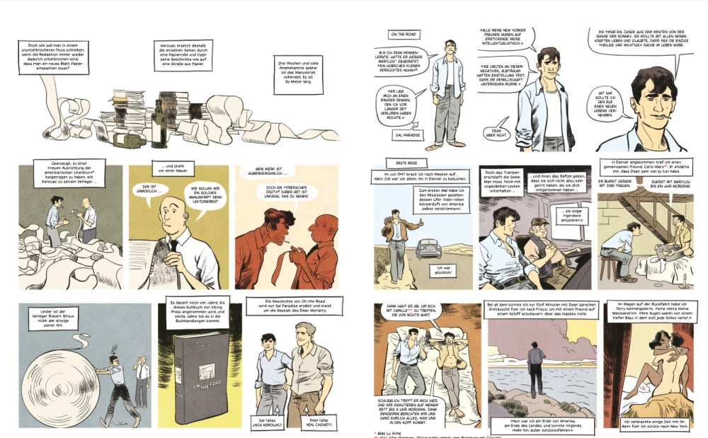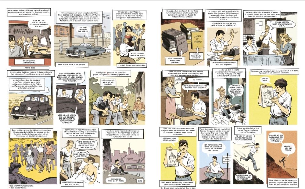 Dieser Comic ist eine Reise durch das Amerika des 20. Jahrhunderts mit seinen größten Autoren und ihren bekanntesten Werken: Dashiell Hammet und die Erfindung des Roman noir, Henry Miller und die Erotik im Land der Puritaner, F. Scott Fitzgerald und die Roaring Twenties, William Faulkner und der Rassismus des Südens, Ernest Hemingway und die verlorene Generation, John Steinbeck und die Krise von 1929, Tennessee Williams und das Theater des Wahnsinns, Jack Kerouac und die Beat Generation, Truman Capote und das True Crime, Flannery O’Connor und der Southern-Gothic-Stil …