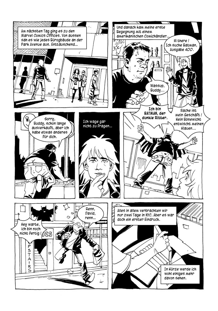 1992 wanderte der Schweizer David Boller nach Amerika aus, um professionell Comics zu zeichnen. Ein einfaches Ziel entfaltete sich in ein sechzehn Jahre langes Abenteuer, bevölkert von exzentrischen Figuren und begleitet von Triumphen und Niederlagen, die sein Leben nachhaltig beeinflusst haben. David erzählt von seinen Erfahrungen in der