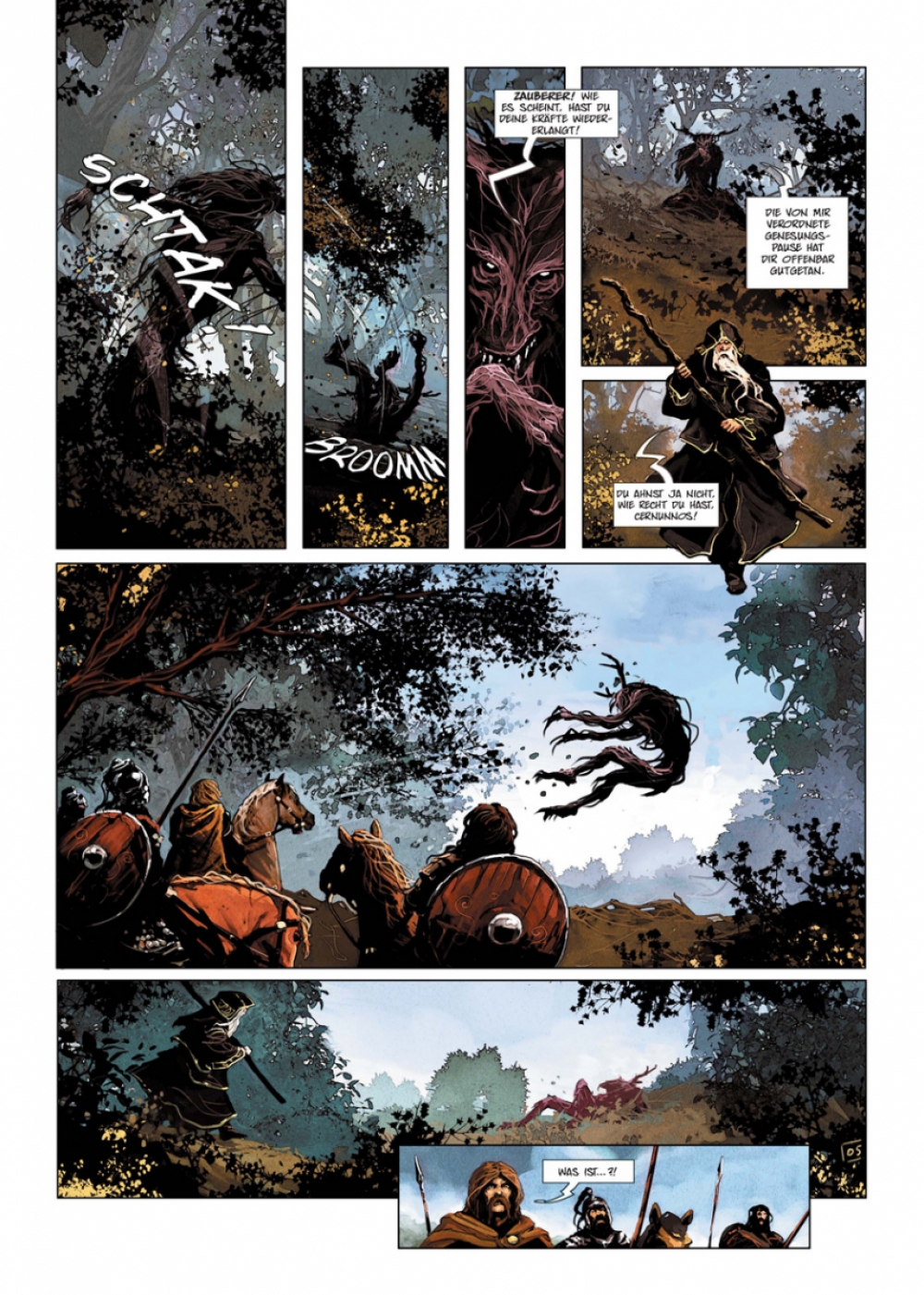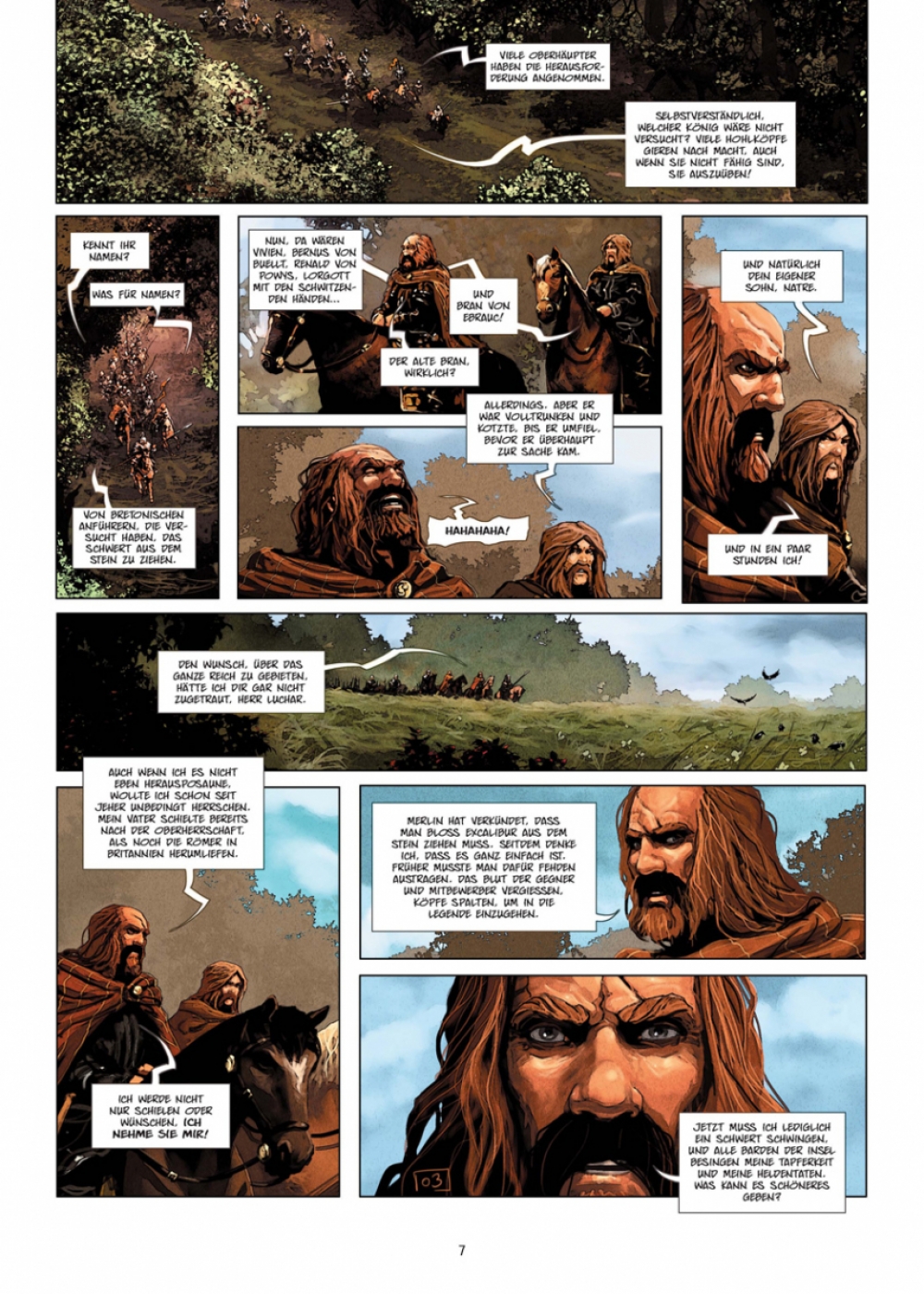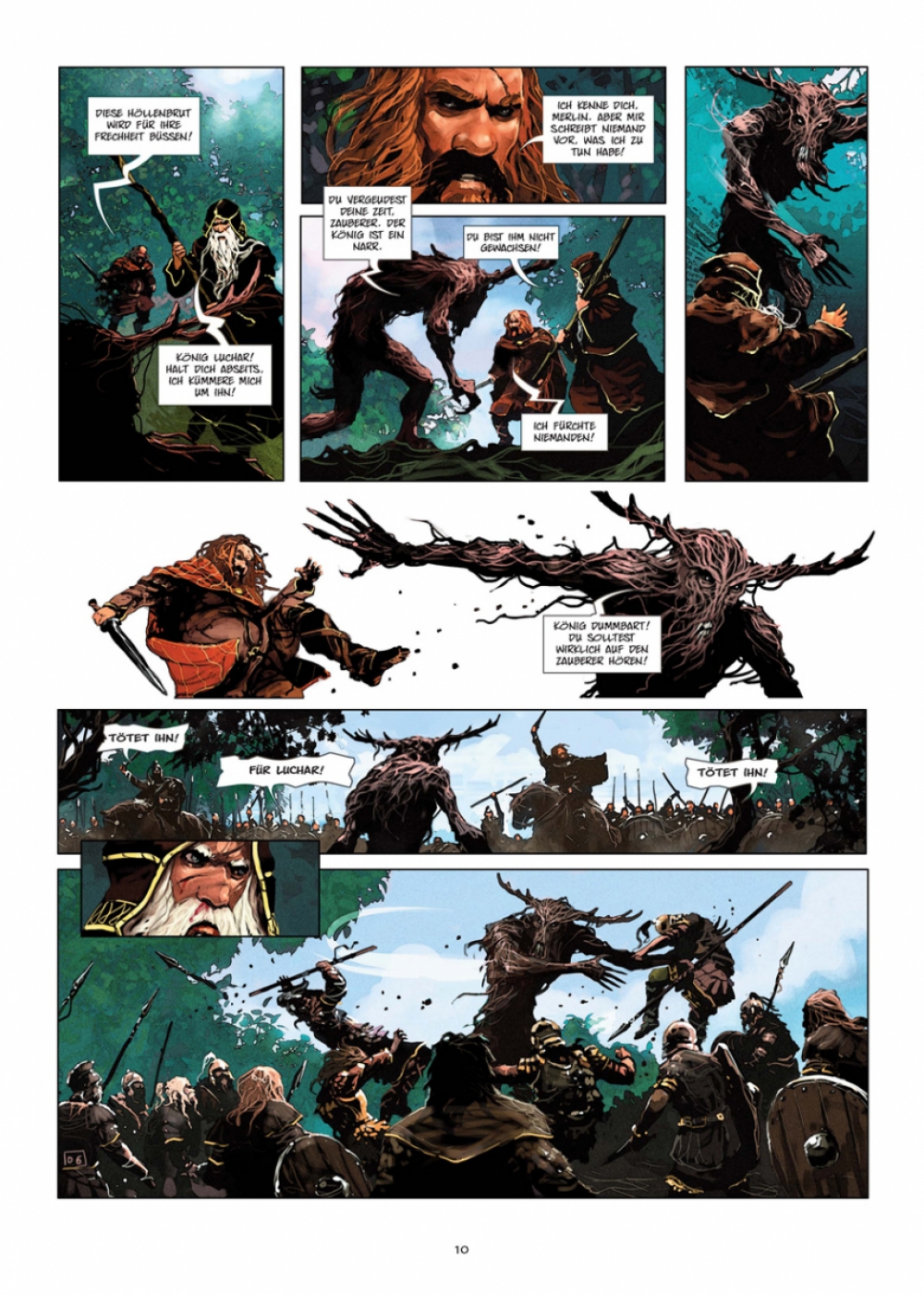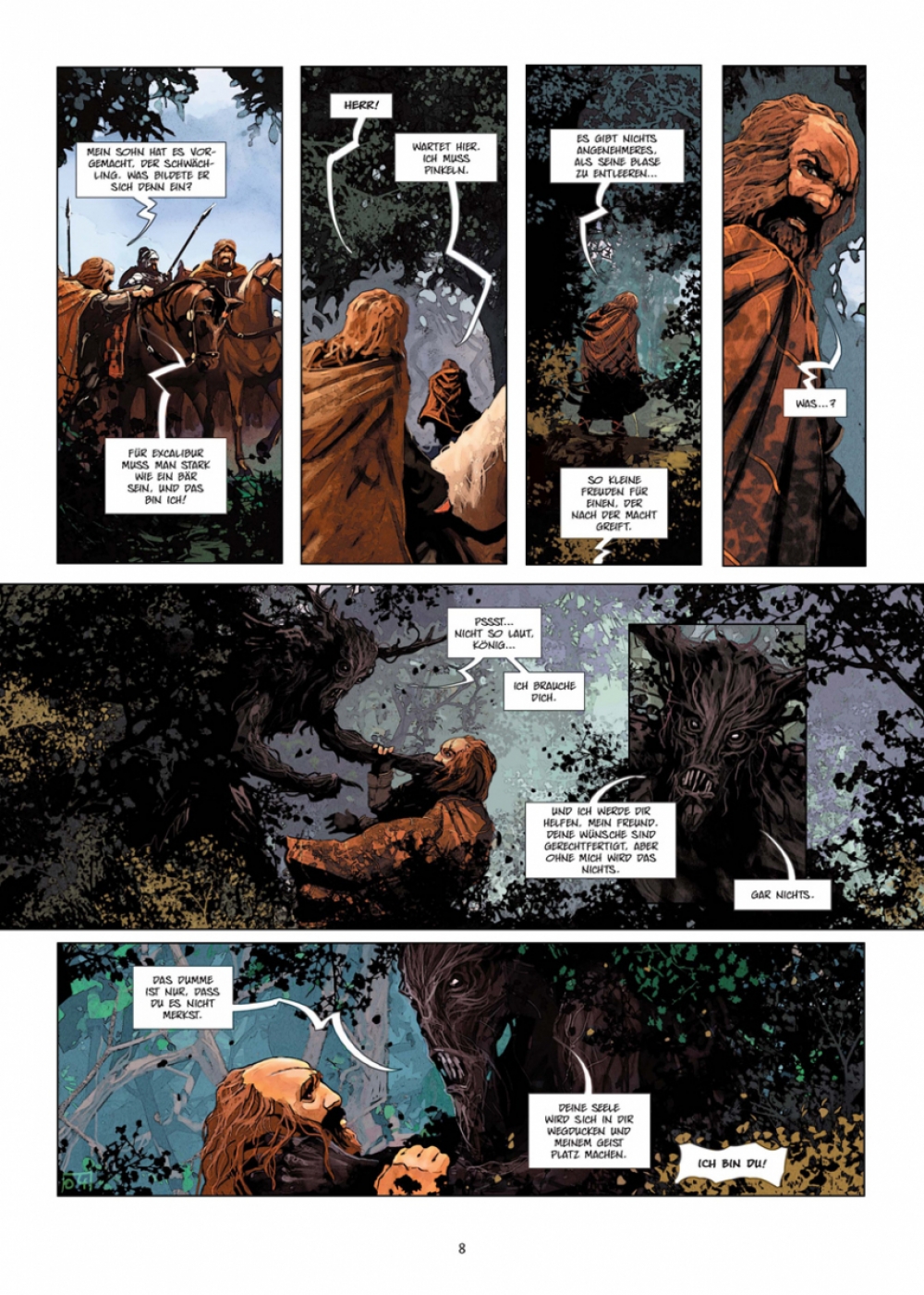Dieses Schwert ist die Verlängerung des Willens von Avalon. Der, der es führt, spricht im Namen der heiligen Insel. Merlin ein alter seherischer, aber nicht unfehlbarer Druide. Uther Pendragon, ein junger Rohling, der lernt ein wahrer König zu werden. Ygraine, eine Frau, geschlagen für ihre religiösen Überzeugungen. Gorlois, ein perverser Sadist von fanatischer Gottesfurcht und Henker seiner Frau. Und Morgane, ein bezauberndes Kind, das Dinge sieht, die sonst niemand sieht, nicht einmal Merlin. Ein Kind das darunter leidet zu wissen, dass es unweigerlich eines Tages böse sein wird.