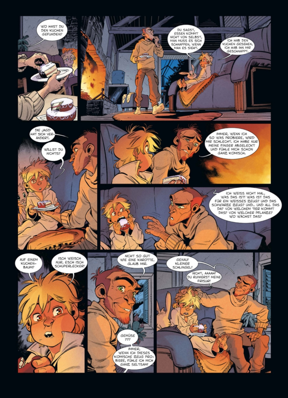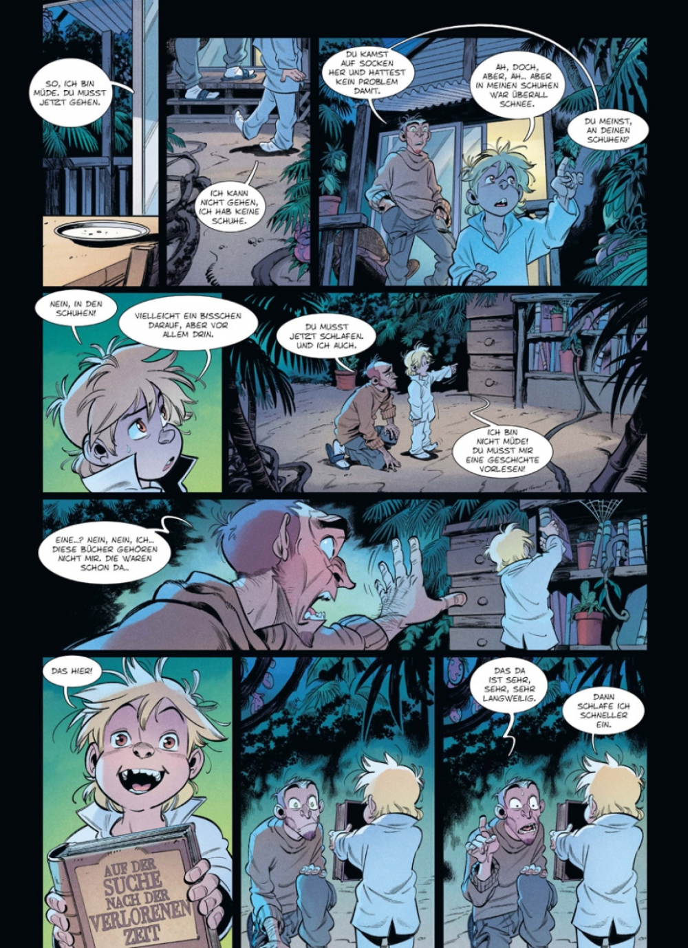 Nach einem gewaltigen Vulkanausbruch musste der gesamte Stamm an Bord eines behelfsmäßigen Bootes, eigentlich nicht mehr als ein Baumstamm, auf See fliehen. Franck war der letzte, der Leonardo und Klotzkopf lebend gesehen hat, und jetzt wird er beschuldigt, sie zum Sterben zurückgelassen zu haben. Er kann schließlich kaum erklären, dass die beiden in denselben Tümpel geplumpst sind, durch den er hergekommen ist, und sich jetzt im 21. Jahrhundert befinden! Viel Zeit zum Durchschnaufen bleibt dem Teenager so oder so nicht, denn ehe er sich versieht, wird er von einem Kannibalenstamm gefangen genommen, dessen Anführerin Unangenehmes im Schilde führt...
