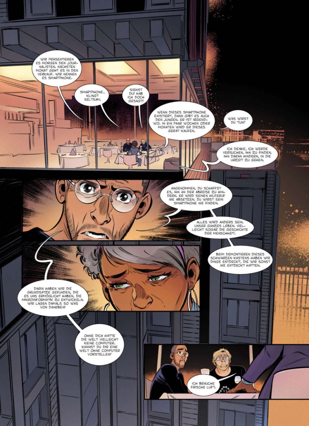 Wir befinden uns wieder einmal in den 70er Jahren (des 20. Jahrhunderts). Die langhaarigen Geeks Cameron und Ryan werkeln in ihrer Garage daran, die Computertechnik von Grund auf zu revolutionieren, als Gerichtsvollzieher auftauchen, um ihre Geräte zu pfänden, weil die beiden einen Berg Schulden nicht bezahlen können. Da erscheint plötzlich eine junge Frau namens Anoukis, die verkündet, all ihre Probleme zu lösen, wenn Cameron und Ryan ihr einen Gefallen tun: Sie sollen so schnell wie möglich das Smartphone erfinden (das sie in der Zukunft sowieso erfinden werden). Um ihnen zu helfen, hat die Frau das alte Telefon von Franck mitgebracht (das erst in ein paar Jahrzehnten gebaut werden wird). Vierzig Jahre später ist es den Nerds gelungen, und jetzt kann Anoukis endlich versuchen, Franck und sein Telefon daran zu hindern, in die Urzeit zu reisen…