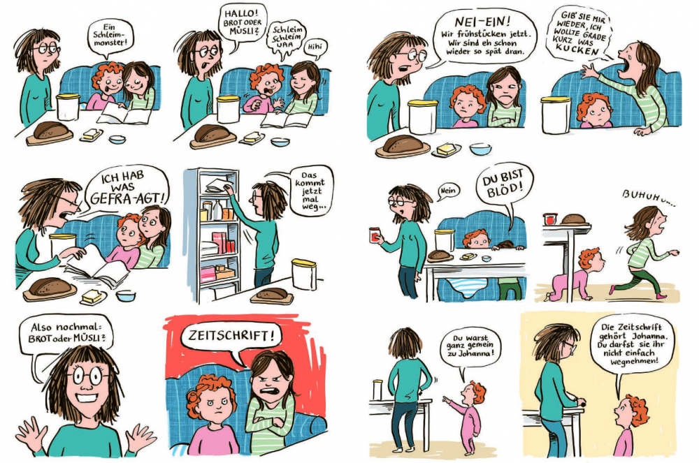 Alle Eltern kennen die täglichen Mühen, morgens die Kinder aus dem Bett und zur Schule und abends ins Bett und zum Schlafen zu bekommen oder sie zu Aktivitäten an der frischen Luft zu motivieren. Dieser genau beobachtende humorvolle Comic bringt einen aber nicht nur zum Lachen, sondern auch die beruhigende Erkenntnis, dass der Alltag in anderen Familien ähnlich chaotisch ist.