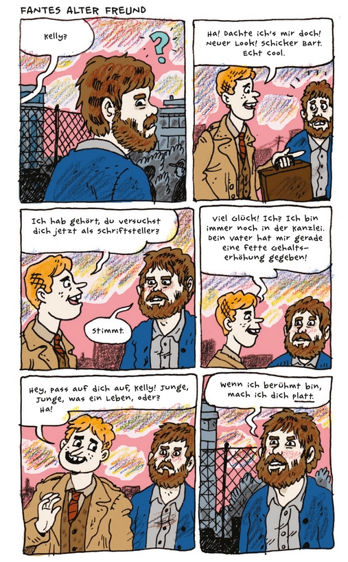 Kelly Perkins hat keine Lust mehr, Rechtsanwaltsgehilfe zu sein, er fühlt sich zu Höherem berufen. Also nennt er sich fortan Fante Bukowski und zieht aus, ein berühmter Schriftsteller zu werden, so wie seine beiden unfreiwilligen Namenspatronen.