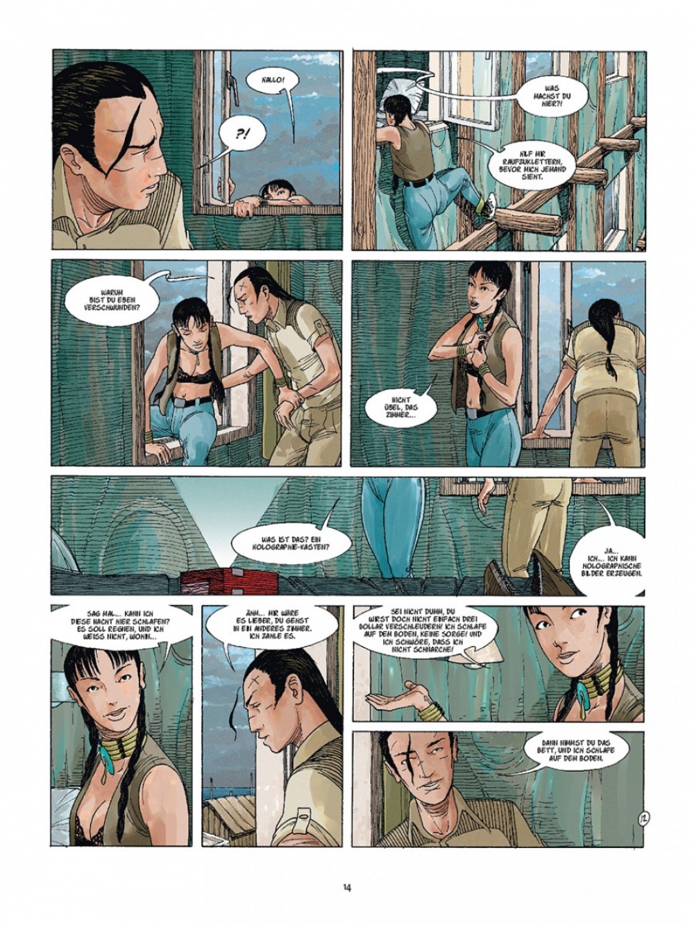 Der Weltraum, undendliche Weiten und die unbändige Lust, aufregend neue, völlig andersartige Welten zu entdecken, erkunden und letztlich zu besiedeln: Das ist das Leitmotiv von Leo, wie er es in seinem Hauptwerk, den exotischen Welten von »Aldebaran« bis »Antares«, oder jüngst mit »Centaurus« entfaltet. Und wie der Titel schon verspricht, macht auch »Ferne Welten« da keine Ausnahme. Dennoch verschiebt Leo ein wenig den Fokus und zeigt nun einen entlegenen Planeten, Altair 3, auf dem die Menschheit bereits seit einigen Jahrzehnten Fuß gefasst hat. Und genau dort macht sich der junge Neuankömmling Paul auf die abenteuerliche Suche nach seinem Vater… Eine Entdeckungsreise durch eine Gesellschaft im Werden, die bis an deren Ränder führt und darüber hinaus und vor allem dort immer wieder zum Staunen einlädt, angesichts einer fremdartigen, fantastischen Fauna und Flora. Faszinierend!