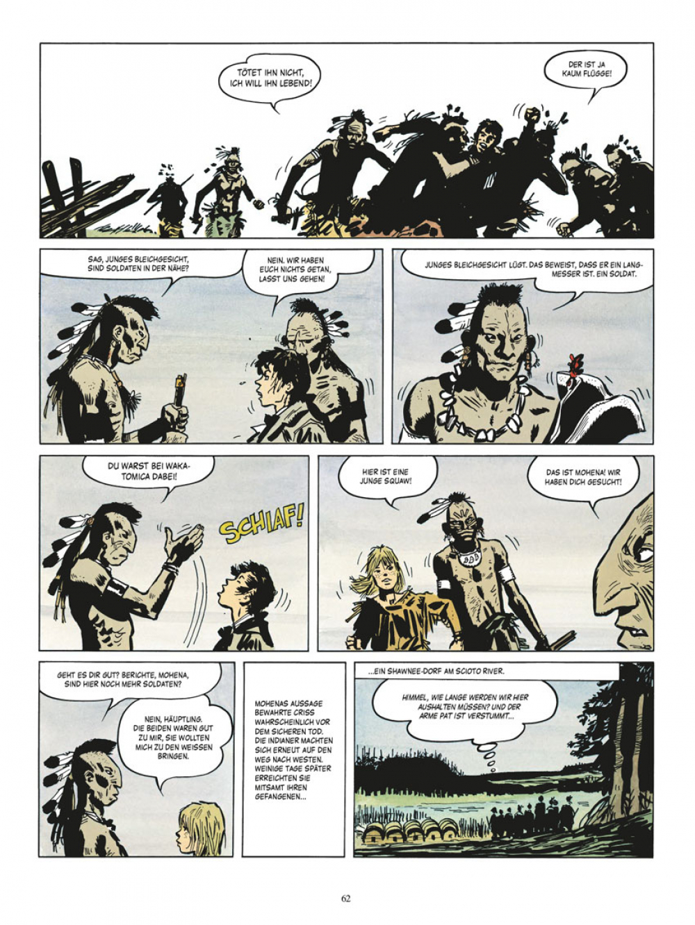 Zwei 17-jährige Freunde 1774 in Virginia: Criss Kentons Eltern wurden von Indianern ermordet, den adeligen Briten Patrick Fitzgerald hat man zum Kämpfen in die Neue Welt geschickt. Als die Unabhängigkeitskriege ausbrechen, werden die Jungen zwangsläufig zu Gegnern. Außerdem haben die beiden sich in dasselbe Mädchen verliebt: Mohena, eine Weiße, die bei den Shawnee aufgewachsen ist...