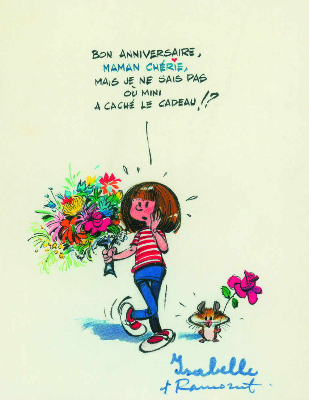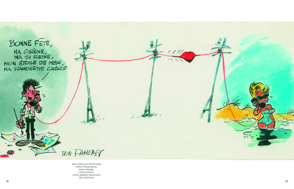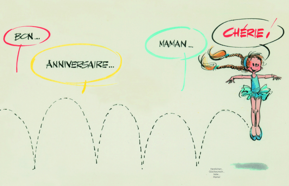 Diese zunächst dem Familienkreis vorbehaltenen Illustrationen decken den Zeitraum von den 1950er- bis 1990er-Jahren ab und ermöglichen einen faszinierenden Blick auf die Arbeit des grafischen Genies, das sichtlich Gefallen an seinen gezeichneten Zuneigungsbezeugungen fand. Zur Freude der Fans von André Franquin macht seine Tochter Isabelle diese kleinen Juwelen nun der Allgemeinheit zugänglich.