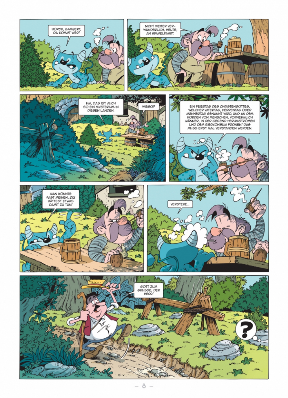 Gambert ist ein Biergenießer der besonderen Sorte: Zurückgezogen in einem idyllischen Wald lebend, frönt er allen irdischen Genüssen, ganz besonders aber dem Bier. Diese Verbundenheit hat einen Grund: Gambert ist der Gott des Bieres. Zwar gab er einst seine Göttlichkeit auf und überlebte so den Untergang der Götterwelt. Doch obliegt ihm nun die Aufgabe, den einzigen Zugang zur »Anderswelt« zu bewachen, wohin jedwede Form der Mythologie verbannt wurde. Praktischerweise befindet sich dieser Übergang in seinem Felsenkeller, gut verborgen zwischen unzähligen Bierfässern. Das beschauliche Leben könnte ewig weitergehen, würden sich in jüngster Zeit nicht die Erscheinungen von Fabelwesen bedrohlich häufen…