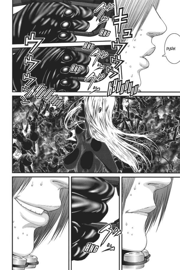 Bei ihrer nächsten Mission werden Kato und seine Mitstreiter überraschend nach Osaka geschickt, wo sie nicht nur auf unzählige Aliens, sondern auch eine weitere GANTZ-Gruppe treffen! Doch diese Kämpfer verfolgen ganz eigene Ziele und sie schrecken vor nichts zurück …