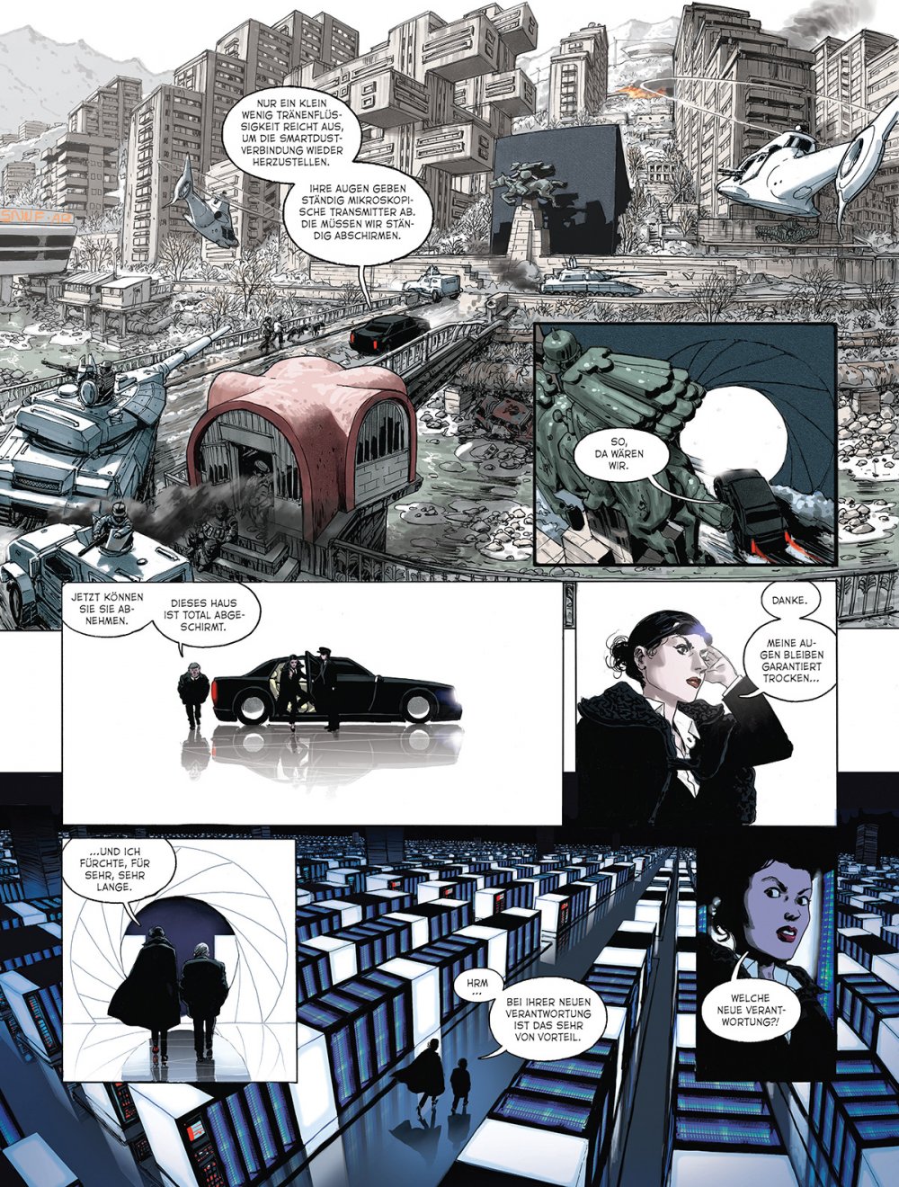 Was anfangs wie eine grelle Zukunftsvision daherkam, stellt sich nun als Beschreibung der Gegenwart heraus, denn: „Wer unsere Realität ablichten will, braucht gar keine wilden Verschwörungstheorien“, sagt der Szenarist Thierry Smolderen.