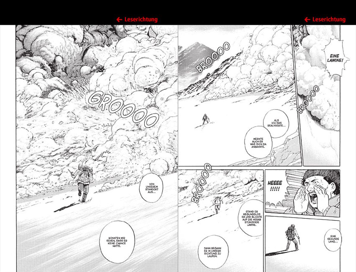Fukamachi erfährt von Habus Abstürzen am Berg, vom tragischen Ende der Rivalität mit dem weltberühmten Alpinisten Hase Tsuneo, und dass der unter Habus Führung verunglückte junge Kishi eine schöne Schwester namens Ryoko hat…