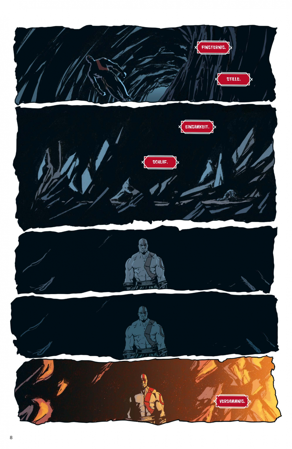 Nachdem er Zeus unterjocht und Athenes Pläne vereitelt hat, glaubt Kratos, endlich frei von seinen Fesseln zu sein. Er macht sich auf den Weg in die Wüste, um sich von seiner Heimat und auch seiner Scham zu distanzieren. Schnell muss er jedoch feststellen, dass seine rasende Wut und die erdrückenden Schuldgefühle ihm dicht auf den Fersen sind. Kratos kämpft unerbittlich gegen den einen Feind, der sich als unbesiegbar erweisen soll – sich selbst. Doch einen Krieg gegen sich selbst kann man nicht gewinnen! Zwangsläufig wartet hier der Wahnsinn am Horizont.