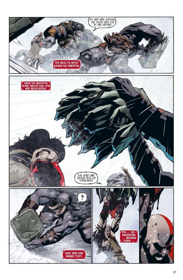 Kratos' Krieg gegen die Götter des Olymps ist längst vorbei, und nun muss er es scheinbar mit der Welt der nordischen Götter aufnehmen ... In der Abgeschiedenheit der nordischen Wildnis will Kratos sich ein neues Leben aufbauen. Bei dem Versuch, die unbändige Wut, die den größten Teil seines Lebens bestimmt hat, hinter sich zu lassen, entfacht Kratos ungewollt eine Fehde mit einem mysteriösen Kult von Berserkern, nachdem er sich vergebens bemühte, einen Fremden zu retten, der von einem monströsen Bären zerfleischt wurde. Doch für den ehemaligen Geist Spartas bleibt keine gute Tat ungesühnt. Chris Roberson (iZOMBIE) und Tony Parker (MAYDAY, THIS DAMNED BAND) entführen uns mit dieser Comic-Adaption des PlayStation-Exlusives GOD OF WAR in die Welt der nordischen Götter, Mythen und actiongeladener Scharmützel, die kein Fan verpassen sollte!