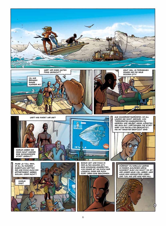Vor fünf Jahren wurde Golden City von einem ferngesteuerten Torpedo getroffen und ging mit Mann und Maus unter. Der Vorstandsvorsitzende Harrison Banks gilt seitdem Anschlag als verschollen, die Geschäfte werden von einem Übergangsgremium geleitet. Das Wrack von Golden City wurde zu einer Wallfahrtsstätte unter Wasser, an der die betroffenen Familien regelmässig ihrer verstorbenen Angehörigen gedenken. Aufgrund technischer Schwierigkeiten und Sicherheitsgründen hatte man darauf verzichtet, dieses Wrack zu reparieren und stattdessen eine neues Golden City erbaut, die erste Stadt der Menschheit im Weltraum. Die eigentliche Stadt ist von Unruhen erfüllt. Aufgrund der finanziellen Situation hat der Stadtrat nun beschlossen, mehrere Flächen zu veräussern, die sich im Besitz der Stadt befinden. Den Anfang macht ein Teil der Küste, gerade jener Teil der Stadt, wo Randy, Mita, Apple, Kumiko und Pelikan Nikos leben. Im Chaos der Stadt wird Kumiko entführt, Banks taucht wieder auf und die Mutter von Harrsion Banks lässt ihre alten Beziehungen spielen. Bei dem Versuch Kumiko zu befreien, treffen die Freunde ungewollt auf alte Bekannte.