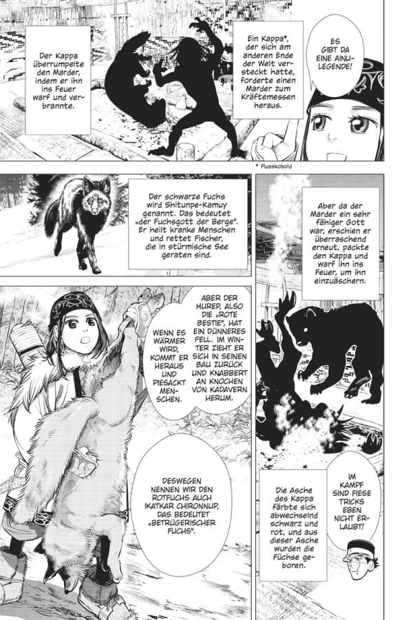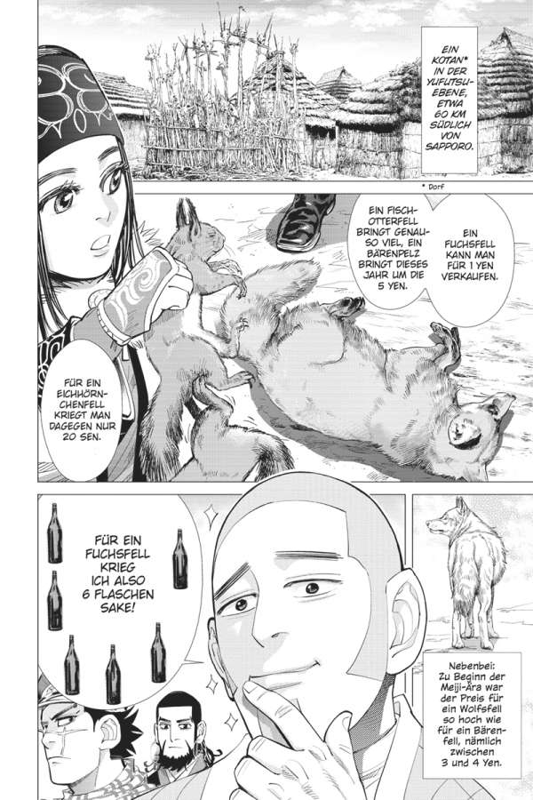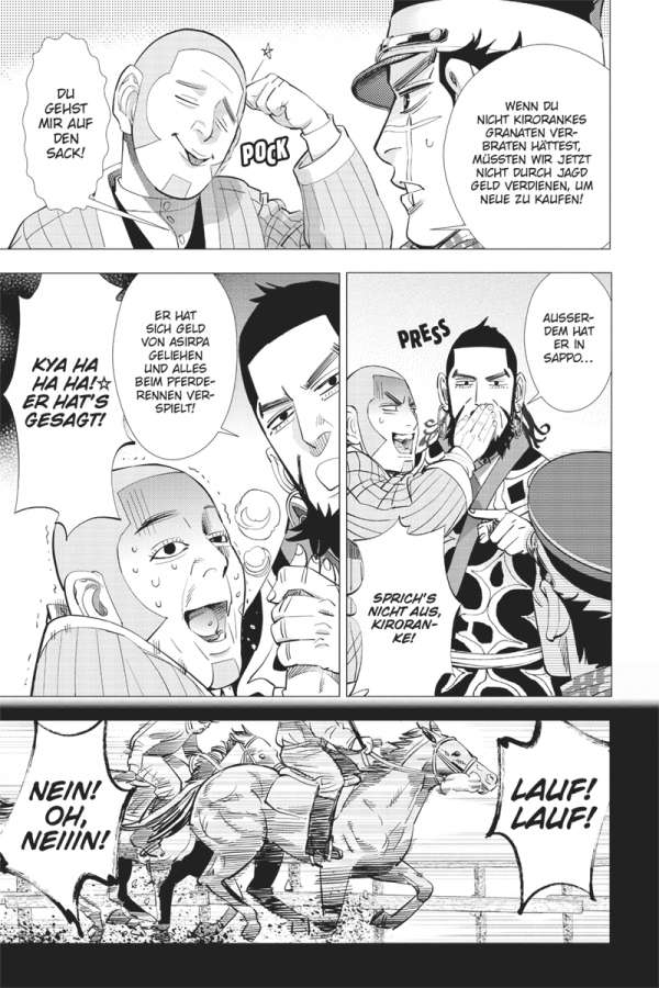 Auf ihrem Weg zum berüchtigten Abashiri-Gefängnis machen Sugimoto und seine Freunde Halt in einem kleinen Ainu-Dorf, wo sie der rätselhaften Wahrsagerin Inkarmat begegnen! Begeistert von der Treffsicherheit ihrer Weissagungen nimmt Shiraishi sie mit zum Pferderennen. Doch was wie ein großer Spaß erscheint, könnte einen tödlichen Ausgang nehmen …