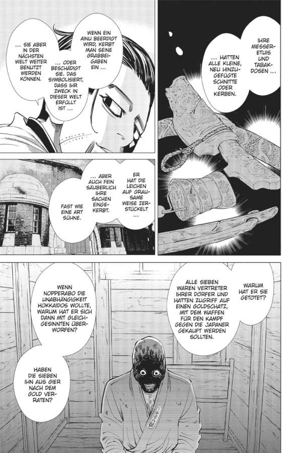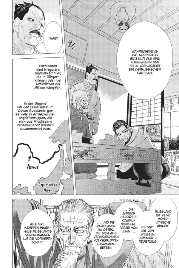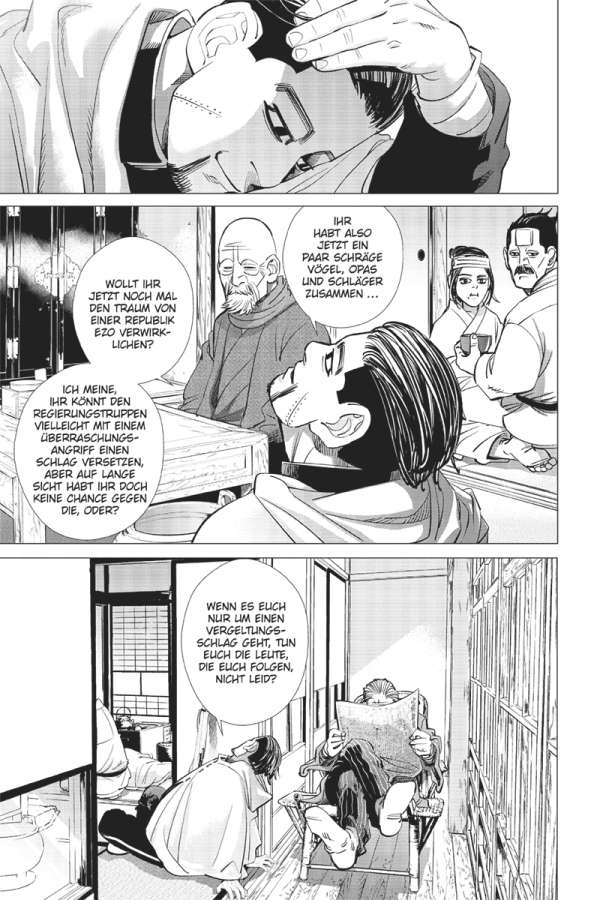 Sugimoto und Asirpa erreichen die Stadt Yubari, doch sind sie nicht die einzigen, die sich in dem Städtchen im Norden Hokkaidos aufhalten – auch der gefährliche Tsurumi und die 7. Division sind dort eingekehrt! Als dann auch noch der Scharfschütze Ogata auf den Plan tritt, entbrennt ein tödlicher Konflikt …
