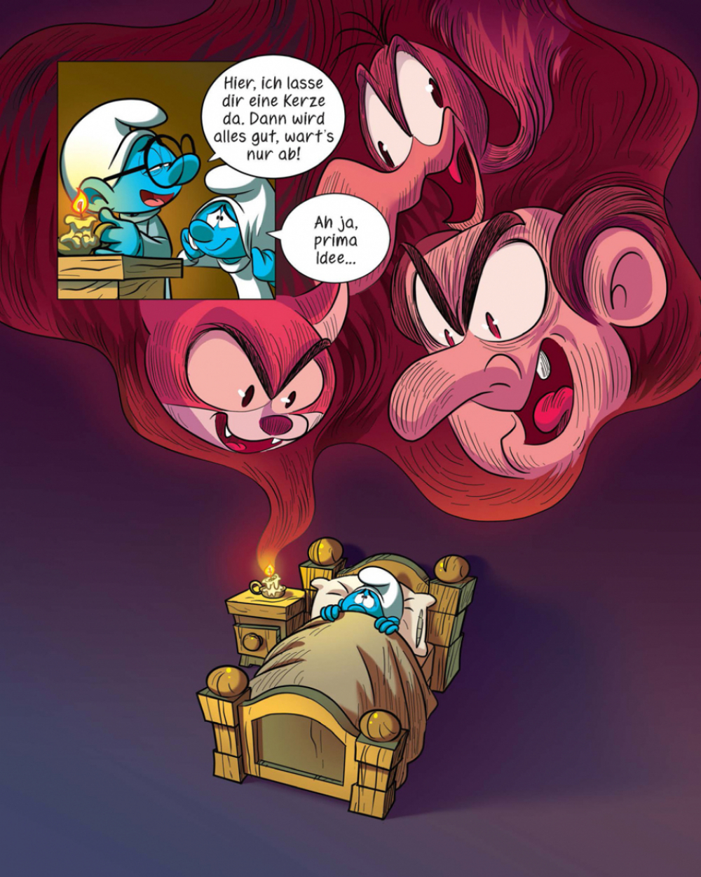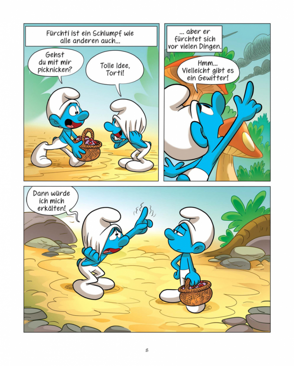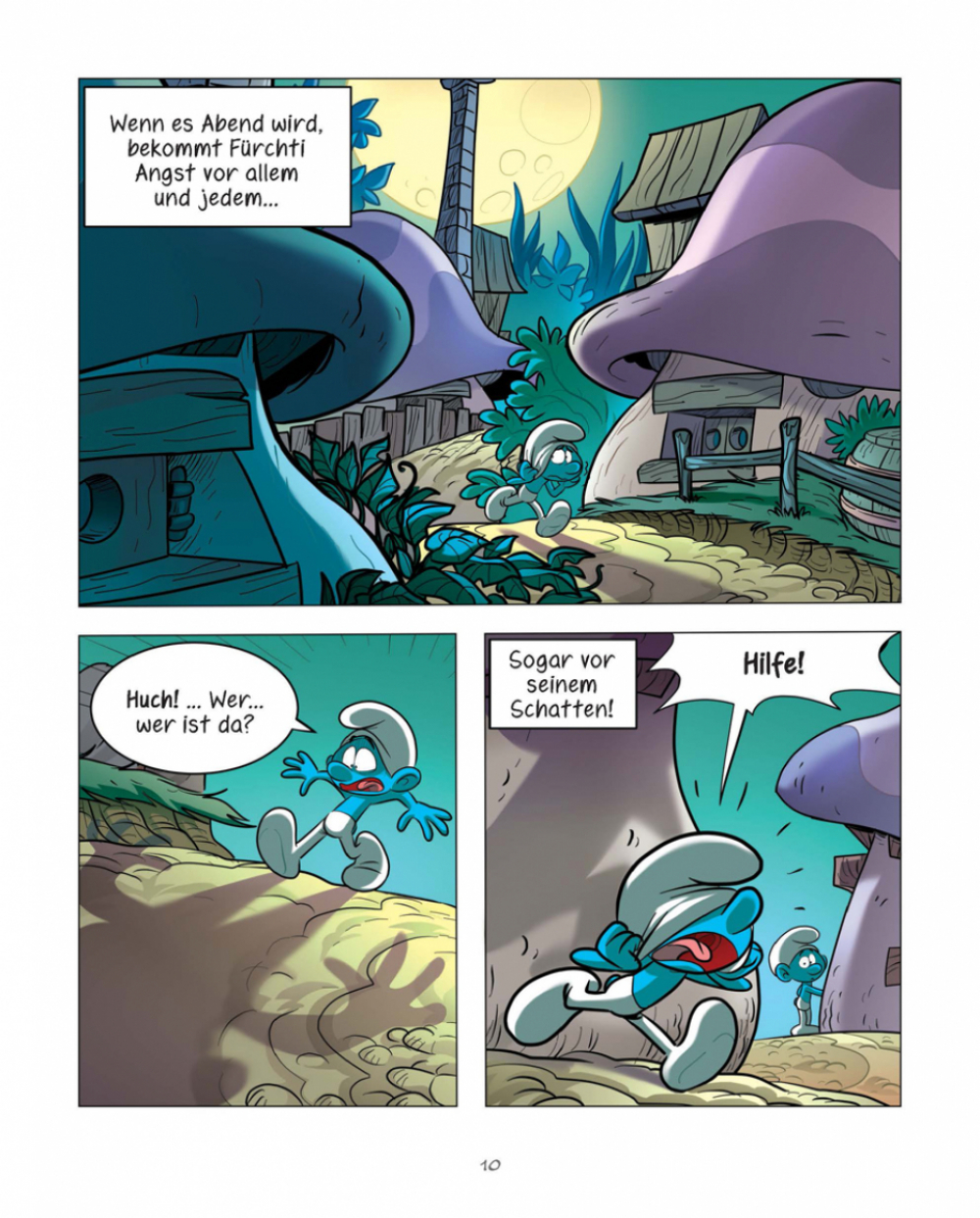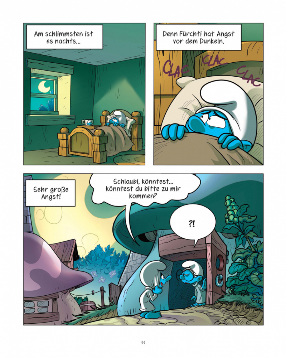 Er hat Angst vor Schnecken und vor Wolken, vor Gewittern und sogar vor seinem eigenen Schatten. Aber am meisten Angst hat Fürchti vor dem Dunkeln! So sehr, dass er nachts nicht schlafen kann und auch die anderen Schlümpfe wachhält. Wird er seine Furcht überwinden können?