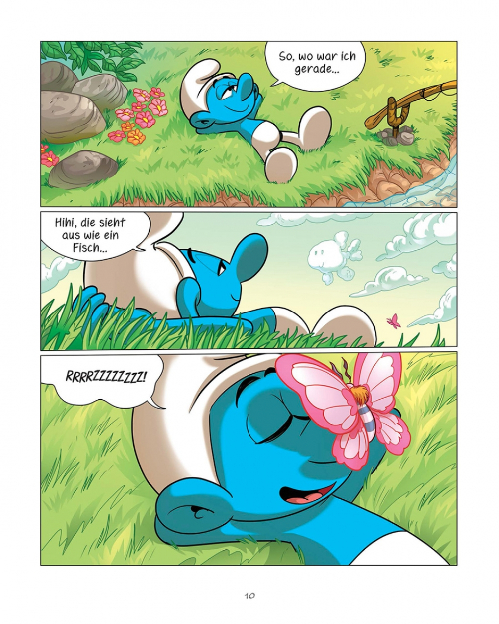 Der Angelschlumpf freundet sich mit einem Schmetterling an, der schnell zu seinem allerbesten Freund wird. Aber leider hat ein Schmetterling ein viel kürzeres Leben als ein Schlumpf... Der Angelschlumpf muss lernen, seine Trauer zu überwinden, um sein Lächeln wiederzufinden.