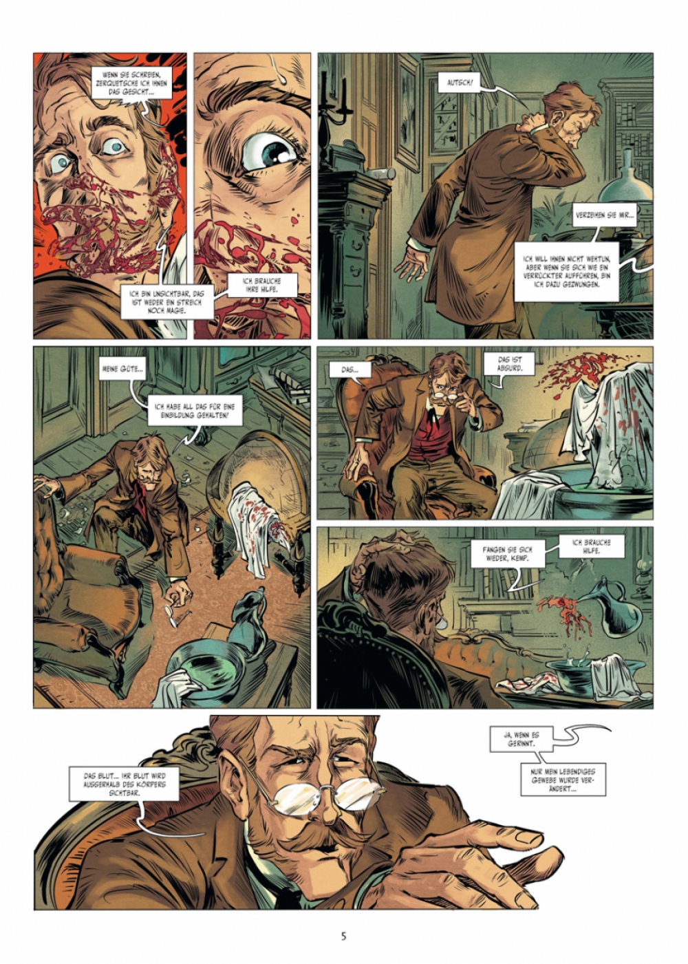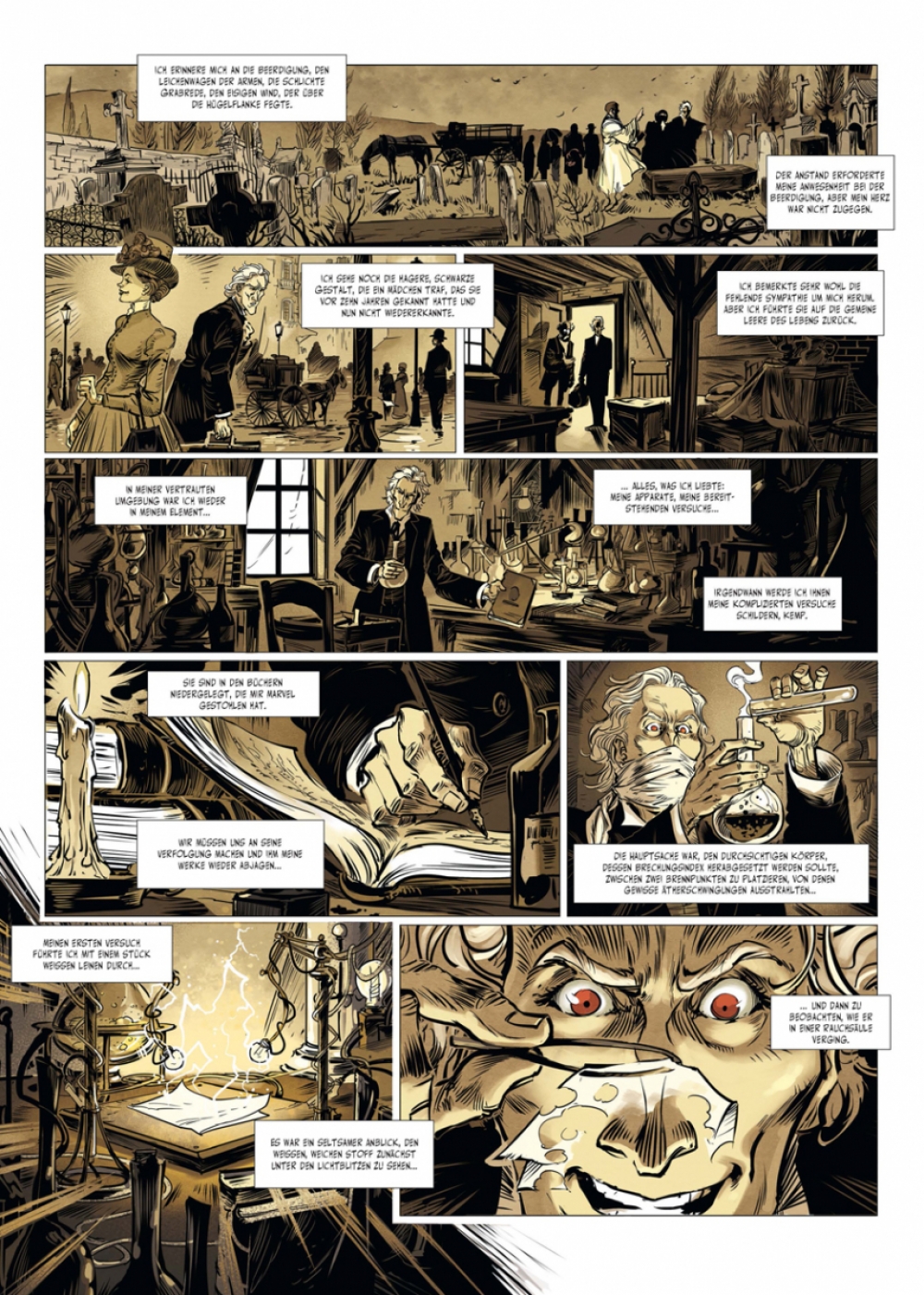 Szenarist Dobbs hat sich deshalb nun daran begeben, zusammen mit einigen ausgewählten Zeichnern eine zeitgemäße Interpretation der Hauptwerke von H.G. Wells im klassischen Geist vorzulegen – neben den eingangs genannten Titeln zudem noch »Der Unsichtbare«, ein weiteres Beispiel dafür, dass die Erzählungen von Wells stets spannend sind, unterhaltsam, auch amüsant und vor allem eins: zeitlos aktuell!