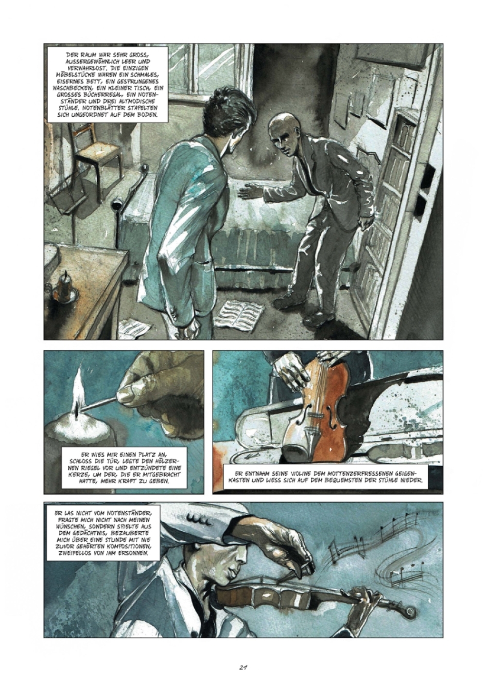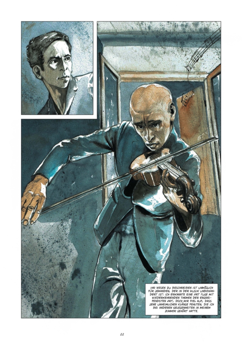 In »Die Musik des Erich Zann« verbringt ein Geiger Nacht um Nacht mit besessenem Spiel. Sein neuer Nachbar ist von Zanns fremdartiger Musik fasziniert und will um jeden Preis ergründen, was es mit dessen Obsession auf sich hat. Dahinter verbirgt sich jedoch eine grauenerregende Wahrheit, die jede Vorstellungskraft schier übersteigt…