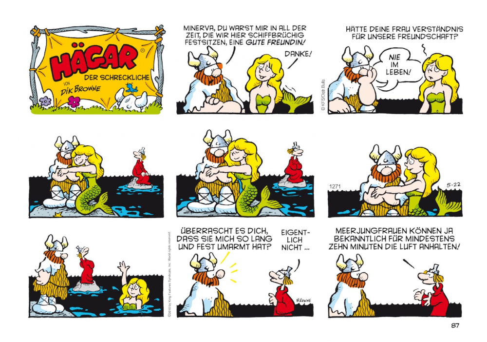 Hägars Schöpfer Dik Brown zählt zu den bedeutendsten amerikanischen Cartoonisten und hat der Welt mit dem ewigen Pechvogel Sven Glückspilz eine der wohl beliebtesten Nebenfiguren der Comicgeschichte geschenkt. Nachdem die Serie nach dem Tod des Schöpfers viele Jahre von seinem Sohn Chris fortgeführt wurde, ist seit dem Jahr 2021 Brownes Sohn Chance für die Geschicke des gar nicht so schrecklichen Wikingers verantwortlich und führt das Erbe seines Vaters kongenial fort.