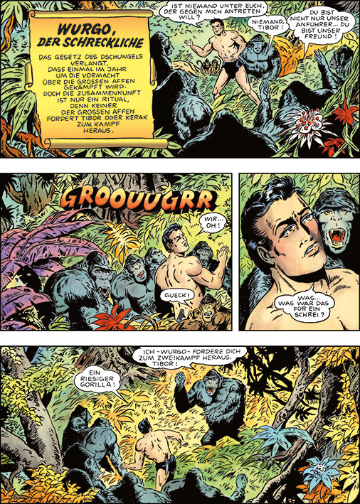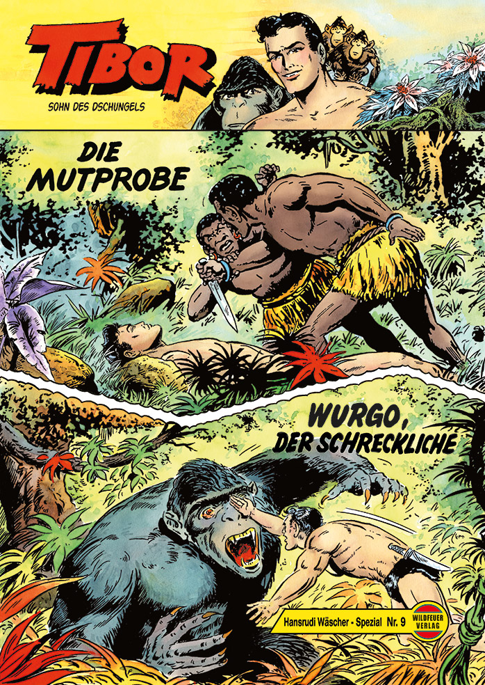 Bei diesem Heft wird eine alte Lehningtradition der zweigeteilten Titelbilder wieder aufgegriffen. Das Tibor-Kurzabenteuer „Die Mutprobe“ wurde erstmals im Tibor Sonderband von 1965 veröffentlicht und Tibor „ Wurgo der Schreckliche“ hat HR. Wäscher für die Buchumschläge des Hethke Verlages neu gezeichnet. Beide Abenteuer hat Toni Rohmen neu koloriert. Auch sind alle Titelbilder, die zu diesen beiden Kurzgeschichten jemals erschienen sind im Innenteil mit abgebildet.