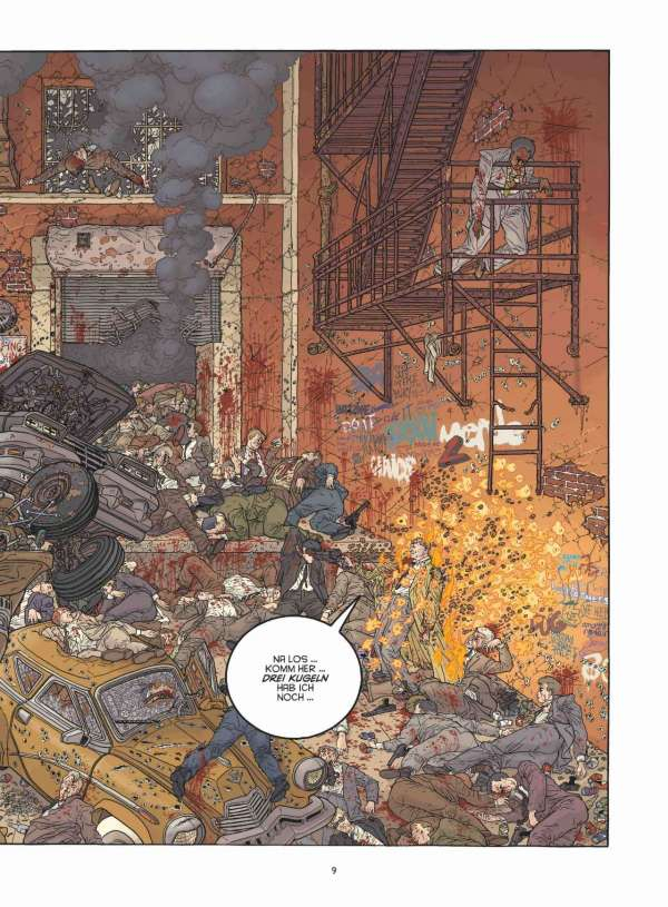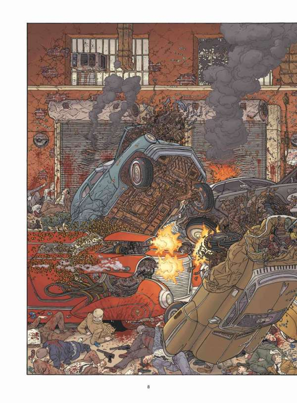 Wenn man Arbeiten von Geof Darrow betrachtet kommen einem Worte wie „detailverliebt“ oder gar „detailbesessen“ unzureichend und nichtig vor. Stundenlang könnte man in seinen urbanen Alpträumen, technoorganischen Monstrositäten und dem einen oder anderen alltäglichen Gewaltexzess versinken.