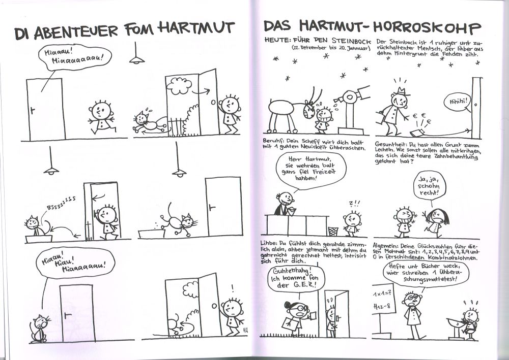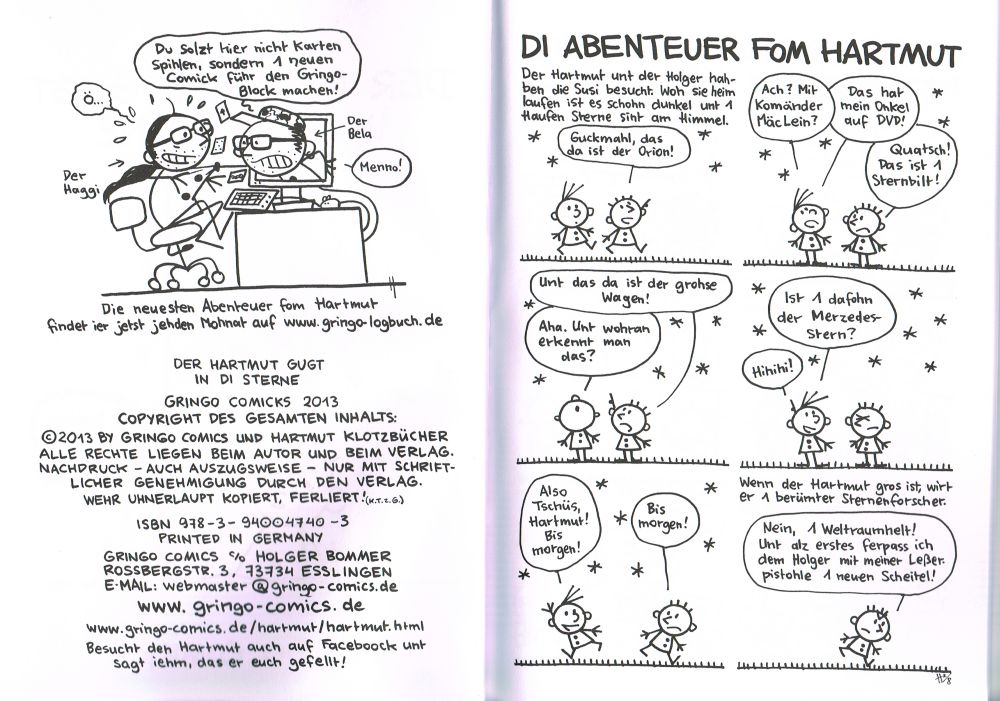 Der Hartmut ist 1 kleiner Junge woh foll guht bescheit weis. In seinem mittlerweile achten Gringo-Band beschäftigt sich der Strichheld mit der Astrologie und verpasst jedem Sternzeichen sein passendes Horoskop.