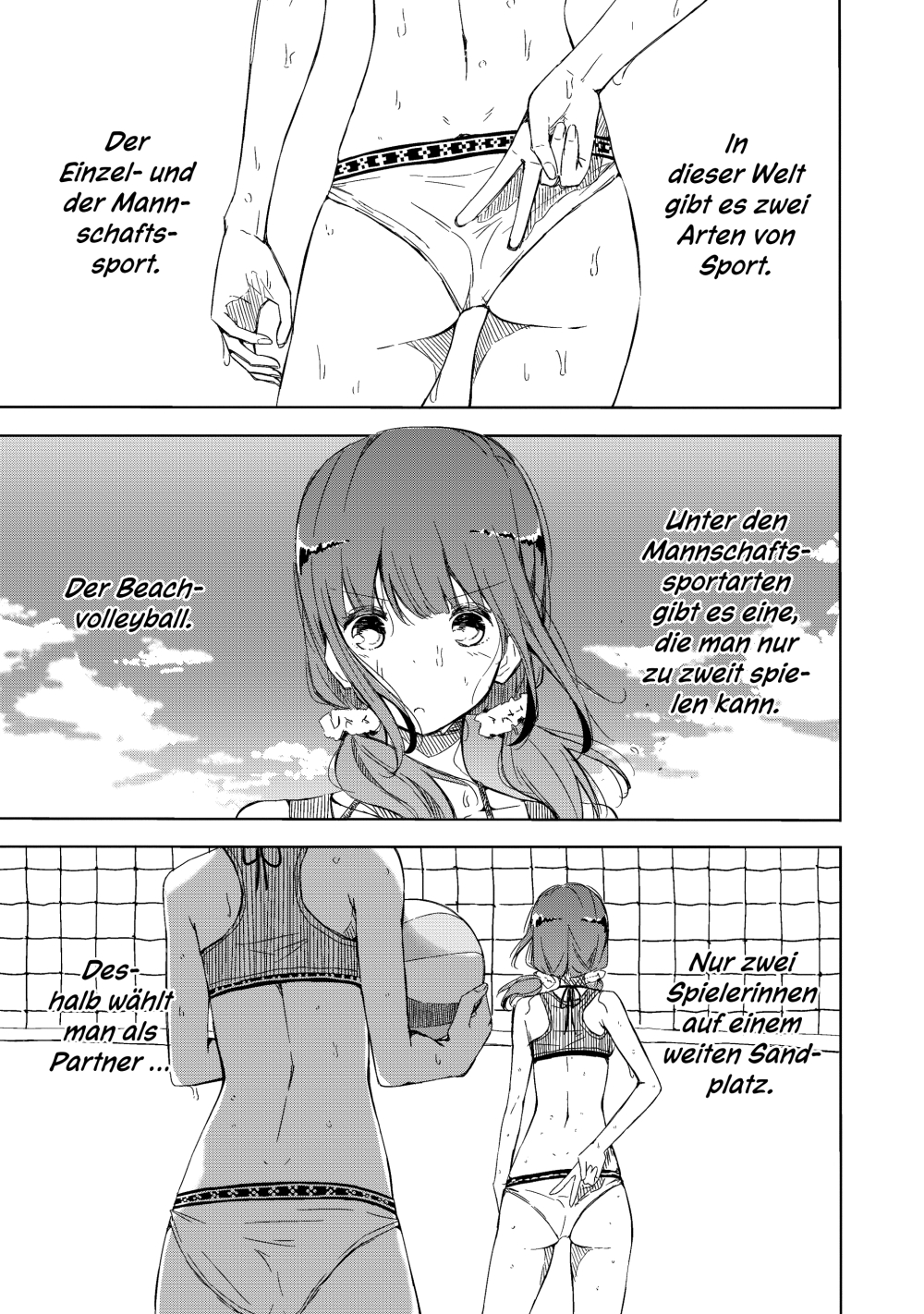 Haruka, die einen Komplex über ihre Körpergröße hat. Kanata, die Beachvolleyball aufgegeben hat, als sie nicht mehr gewachsen ist. Groß × klein, Amateurin × Veteranin, kontaktfreudig × schüchtern …