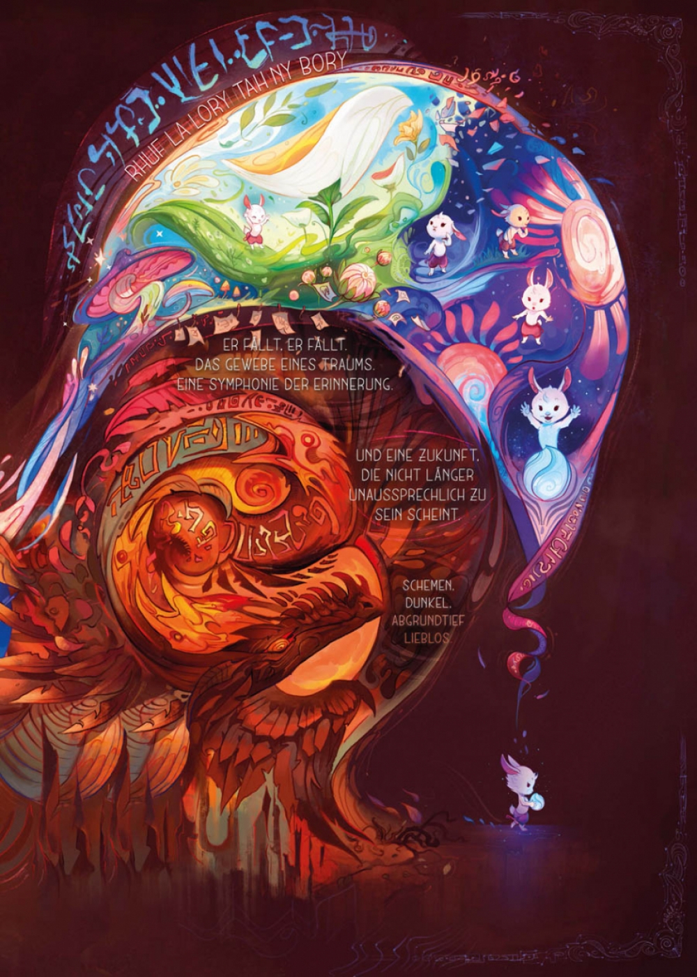"Die Welt von Yria lebt, und ihre Legenden werden ständig fortgeschrieben. Sie leben durch die Erzählungen ihrer Bewohner und in den Träumen ihrer Kinder… »Haunter of Dreams« ist eine Geschichte über die Wunder und die Gefahren der Träume, die uns durch unser Leben begleiten. Und es ist die Geschichte eines kleinen Jungen, der den Schatten seiner eigenen Angst überwinden muss, um das Licht auf der anderen Seite zu erreichen… »Die Legenden von Yria« erweitern die Fantasy-Welt von »Myre« um neue Abenteuer und Charaktere. Taucht tiefer ein in das visionäre Worldbuilding von Claudya Schmidt und Matt Davis und folgt einem tapferen Jungen auf seiner Reise durch ein Traumland in atemberaubenden Bildern.