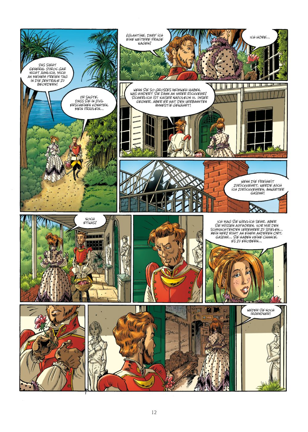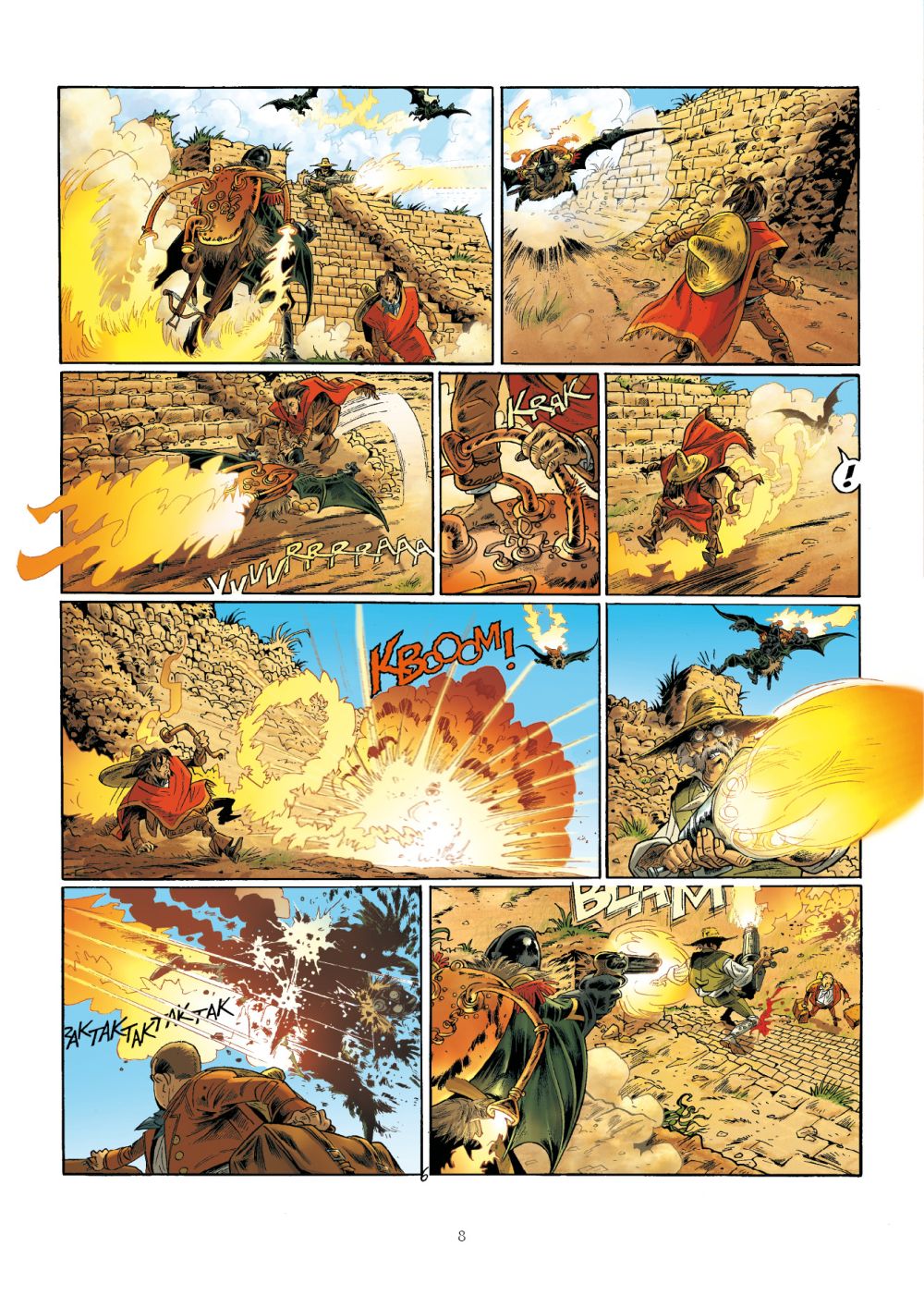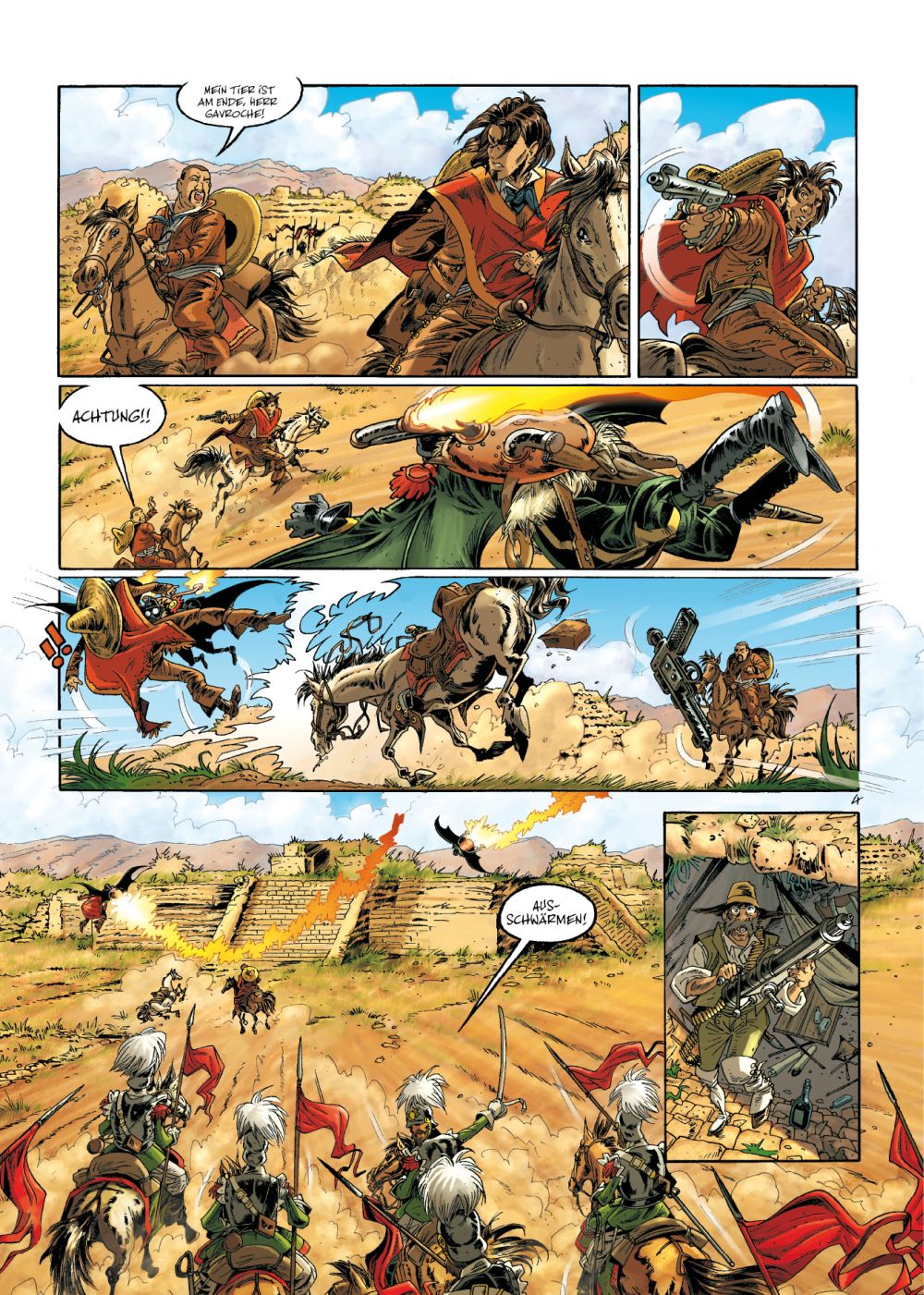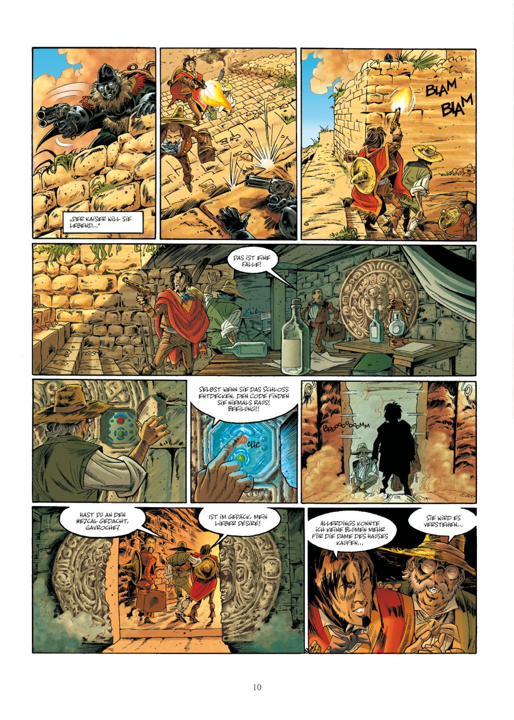 Dort lebt ein schillerndes Archäologenpaar, das ihnen dabei helfen soll, die Geheimnisse des Fragments zu enthüllen. Zugleich aber müssen sie sich aus der Umklammerung der mexikanischen Armee befreien, die sie mit einem ihrer imposantesten Luftschiffe verfolgt. Denn die Santa Anna gleicht eher einer fliegenden Festung als einem einfachen Zeppelin....