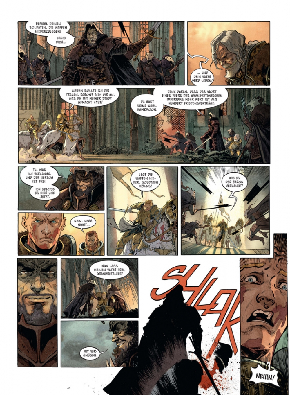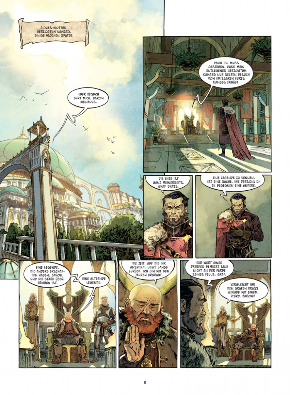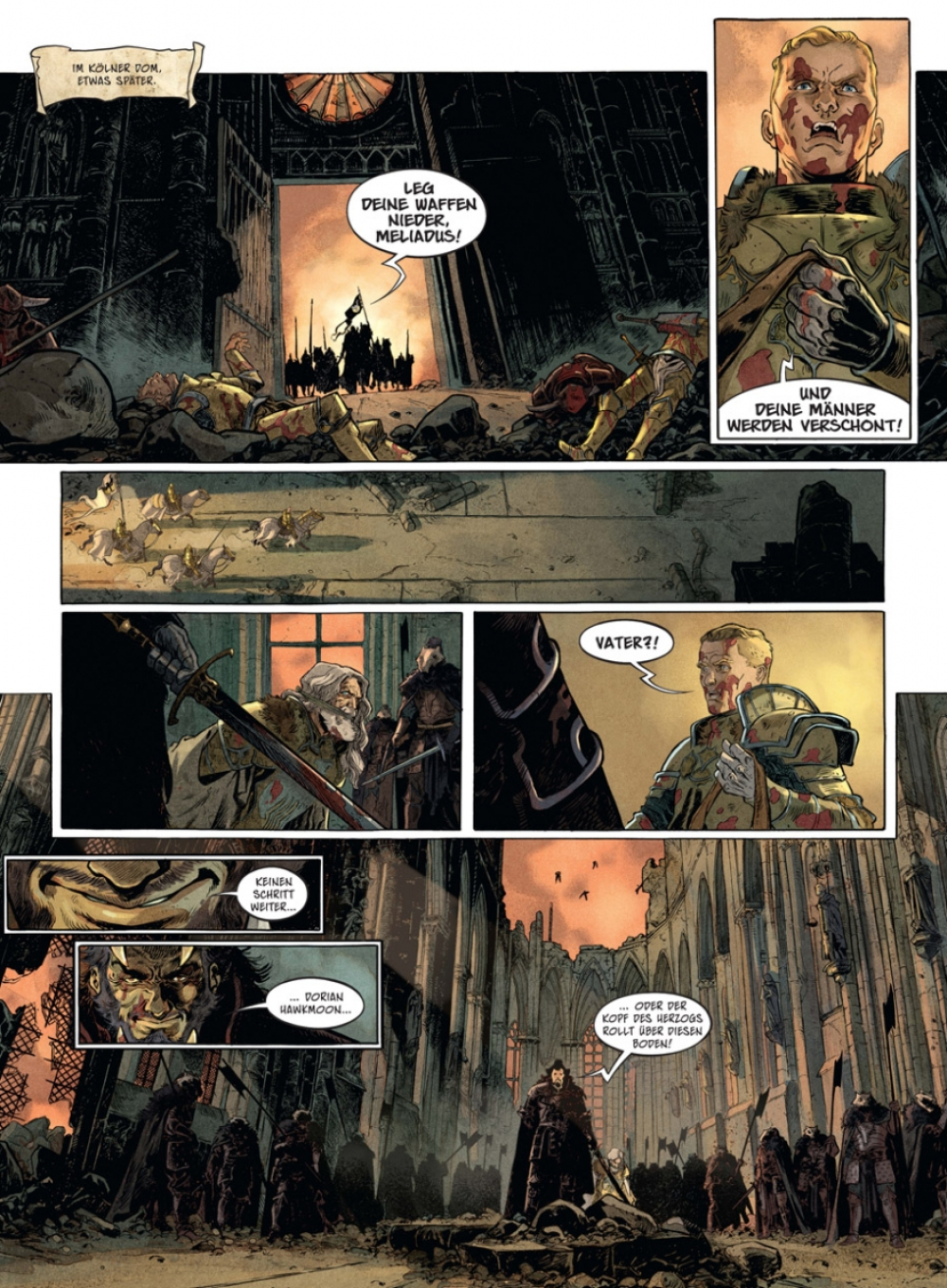 Nach ihrer monumentalen Adaption von »Elric« widmen sich Jérôme Le Gris, Benoit Dellac und Didier Poli nun »Hawkmoon«, einer weiteren Fantasy-Saga aus der Feder von Michael Moorcock. »Hawkmoon« vermischt primitive Wissenschaft mit futuristischer Magie zu einem epischen Werk düsterer Phantastik, das durch atemberaubende Zeichnungen und beunruhigende thematische Modernität besticht.