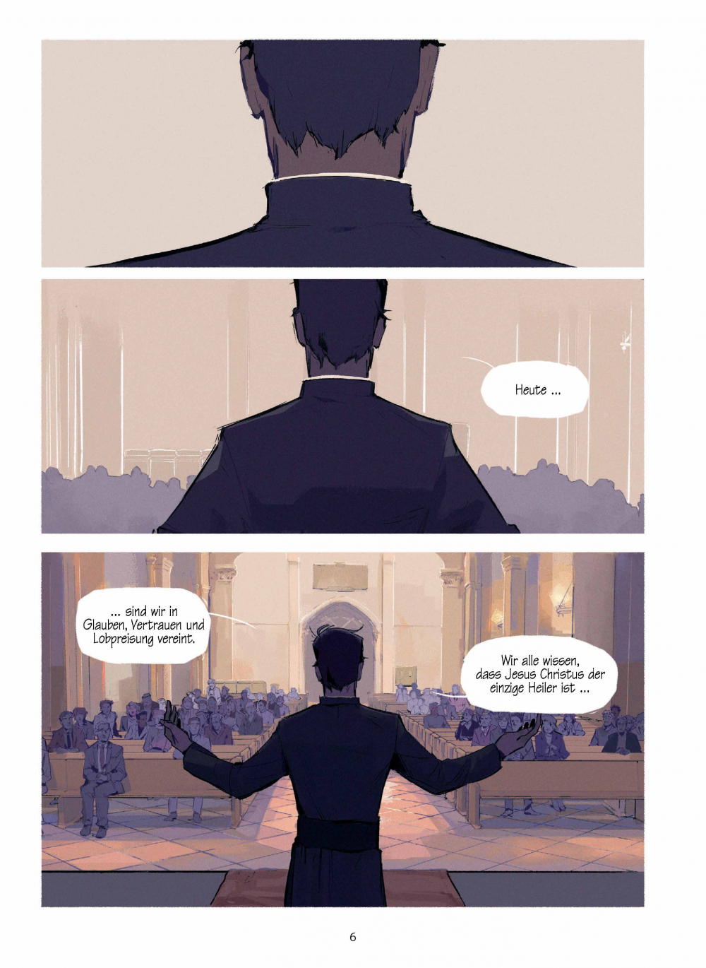 In einer französischen Kleinstadt wird ein wirklich ungewöhnlicher Gottesdienst abgehalten: Dunant, der Priester vor Ort, bezeichnet jenes Zusammenkommen als „Wunderheilung“ und verspricht den Leidenden, dass sie mit einer einzigen Berührung seiner Hände von all ihren Beschwerden geheilt werden würden.