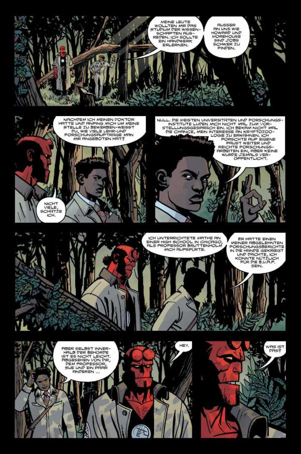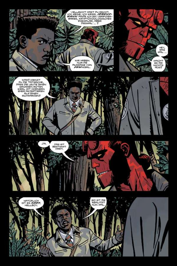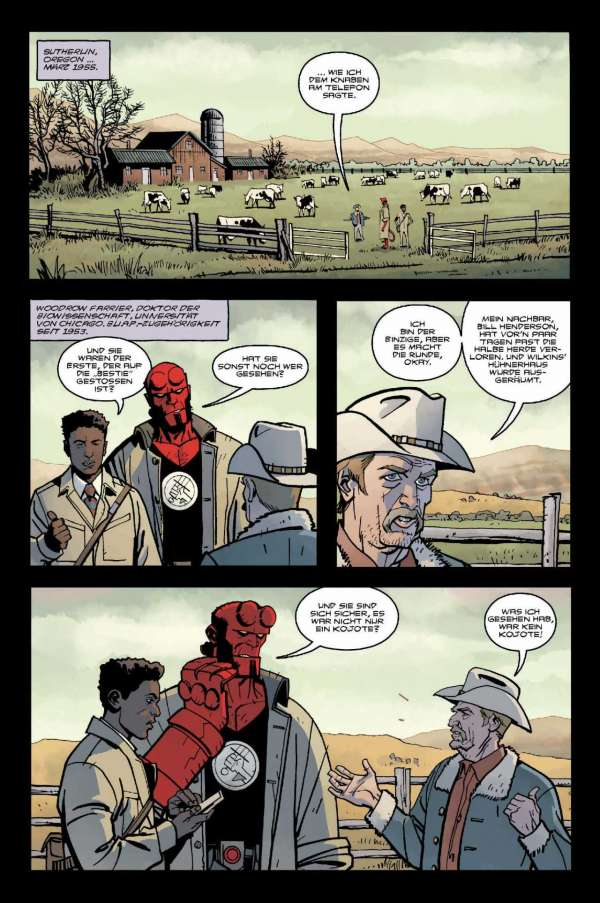 1955. Als Sohn der Hölle hat man es auch nicht leicht im Kampf gegen das übernatürliche Verbrechen! In diesem Band stößt Hellboy auf eine mysteriöse Kreatur, die sich in der hintersten Provinz Oregons auf die Lauer gelegt hat. Auf einer abgelegenen Insel stolpert Hellboy in einen Konflikt zwischen Regierung und anderen Agenten, der sich um eine Waffe von gänzlich unberechenbaren Ausmaßen dreht. Und dann sind da noch die Fälle, bei denen Menschen in Florida aus dem Nichts explodieren …