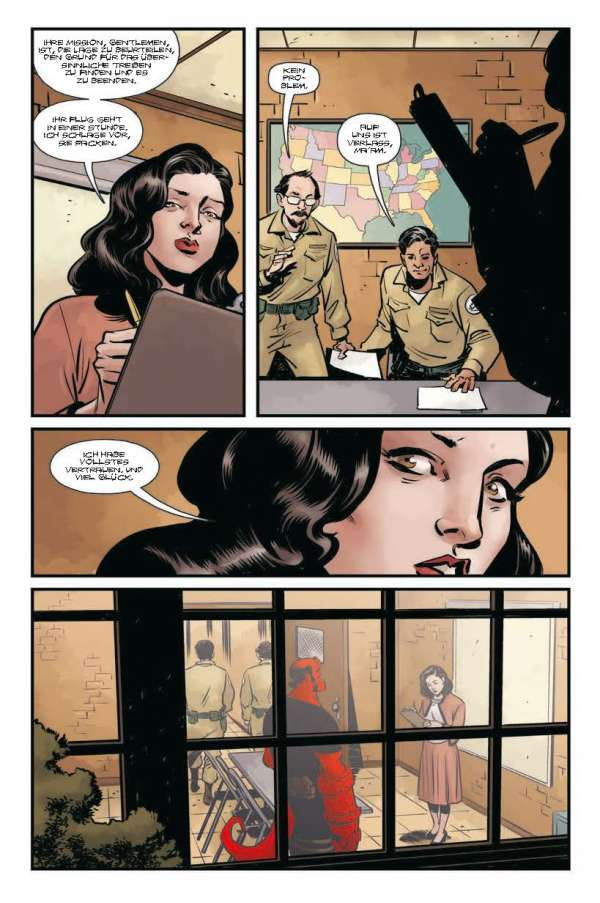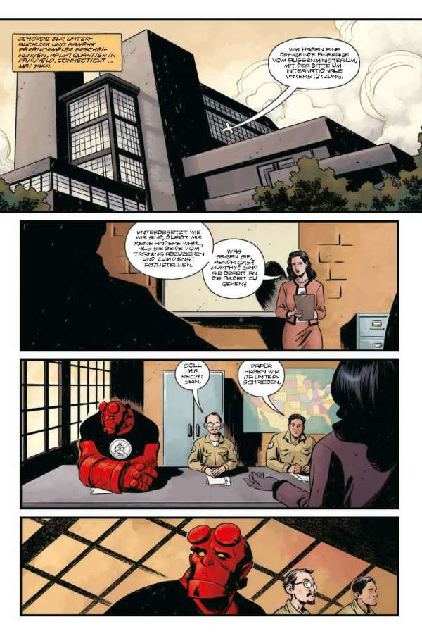 Dieser Sammelband umfasst nebst den 5 Hellboy und die B.U.A.P: 1956-Ausgaben, coole Einzelstorys um Lobster Johnson und so einiges an interessantem Zusatzmaterial. Diesmal werden Mike Mignola und Chris Roberson von drei anderen brillanten Artists verstärkt, die der Storyline mächtig einheizen – mit dabei: Yishan Li (Buffy: The Highschool Years), Michael Avon Oeming (Attack on Titan) und Mike Norton (REVIVAL).
