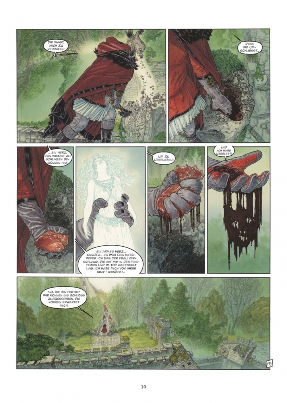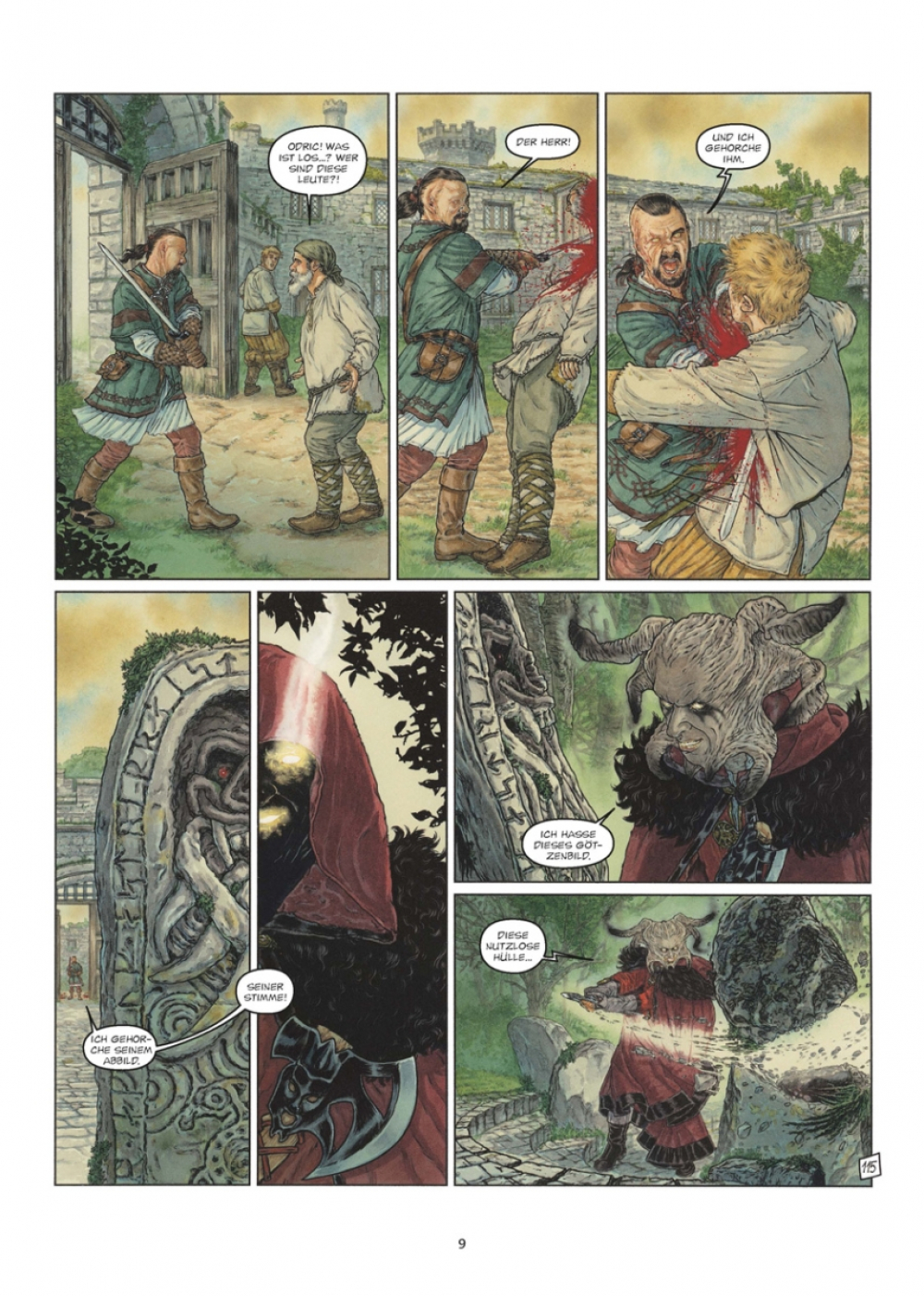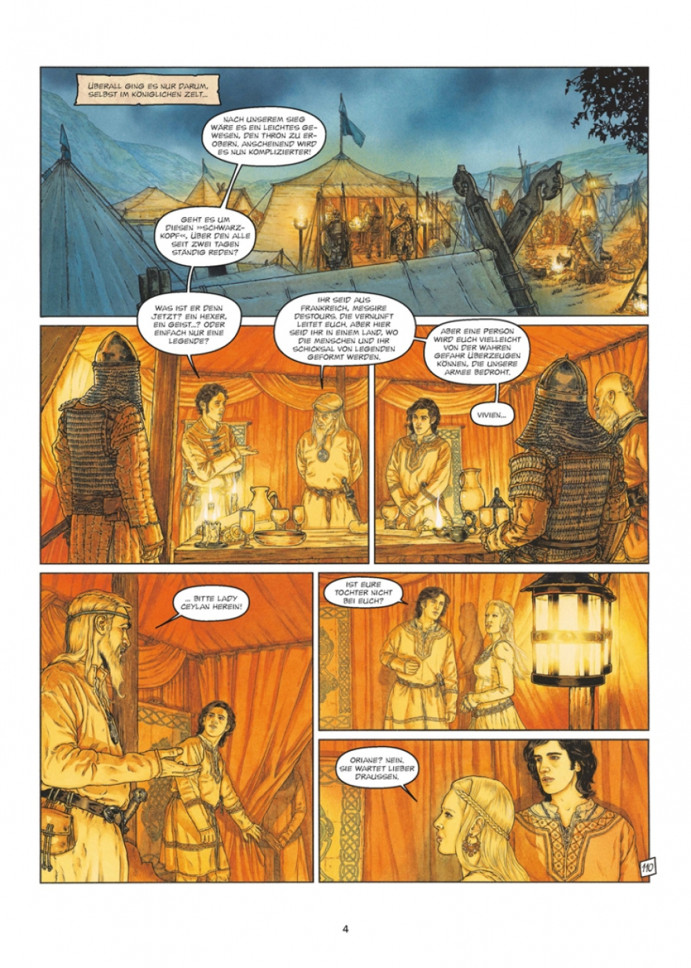 Es ist ein karger, isolierter Landstrich weit draußen im Meer, den Jean Dufaux (»Kreuzzug«, »Conquistador« etc.) da entworfen hat – mit hartgesottenen Bewohnern, denn außer dem rauen Klima werden sie auch noch von Zauberern, Dämonen und Hexen geplagt. Zuerst, ab 1993, illustrierte Grzegorz Rosinski (»Thorgal«) dieses »verlorene Land«, dann Philippe Delaby (»Murena«), und nun übernimmt Béatrice Tillier (»Fee«, »Der Wald der Jungfrauen«) den dritten Zyklus, die wieder auf vier Bände angelegten »Hexen des verlorenen Landes«. Dabei erweitert und kontrastiert sie diese archaische, mittelalterliche Fantasy-Welt mit zarten, nuancenreichen Aquarellen und ihrem feinen, prärafaelitischen Strich. Das Ergebnis ist pure Magie. So entstehen echte Legenden!