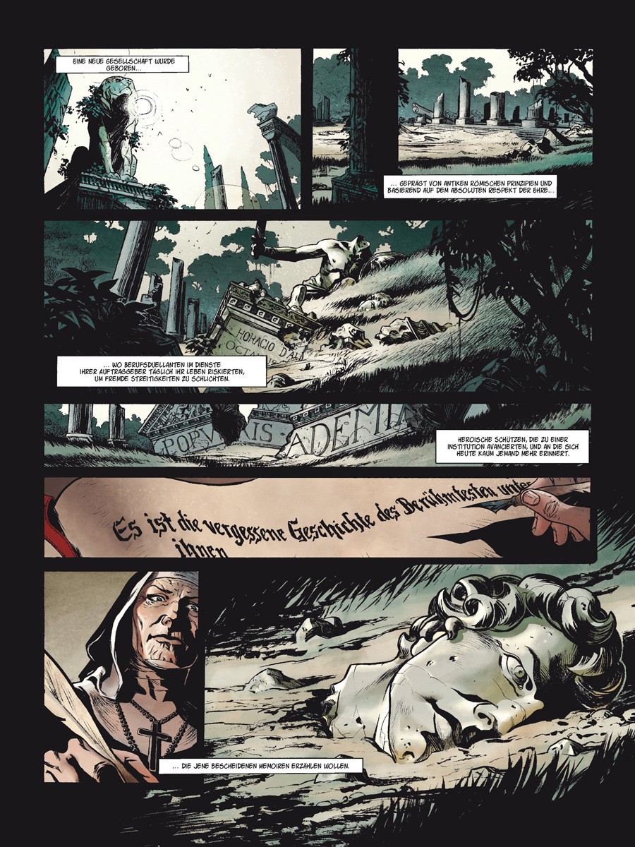Unter ihnen ist auch Horacio d’Alba, der berühmteste aller Duellanten, der im Folgenden in ein politisches Komplott von größter Tragweite hineingezogen wird…