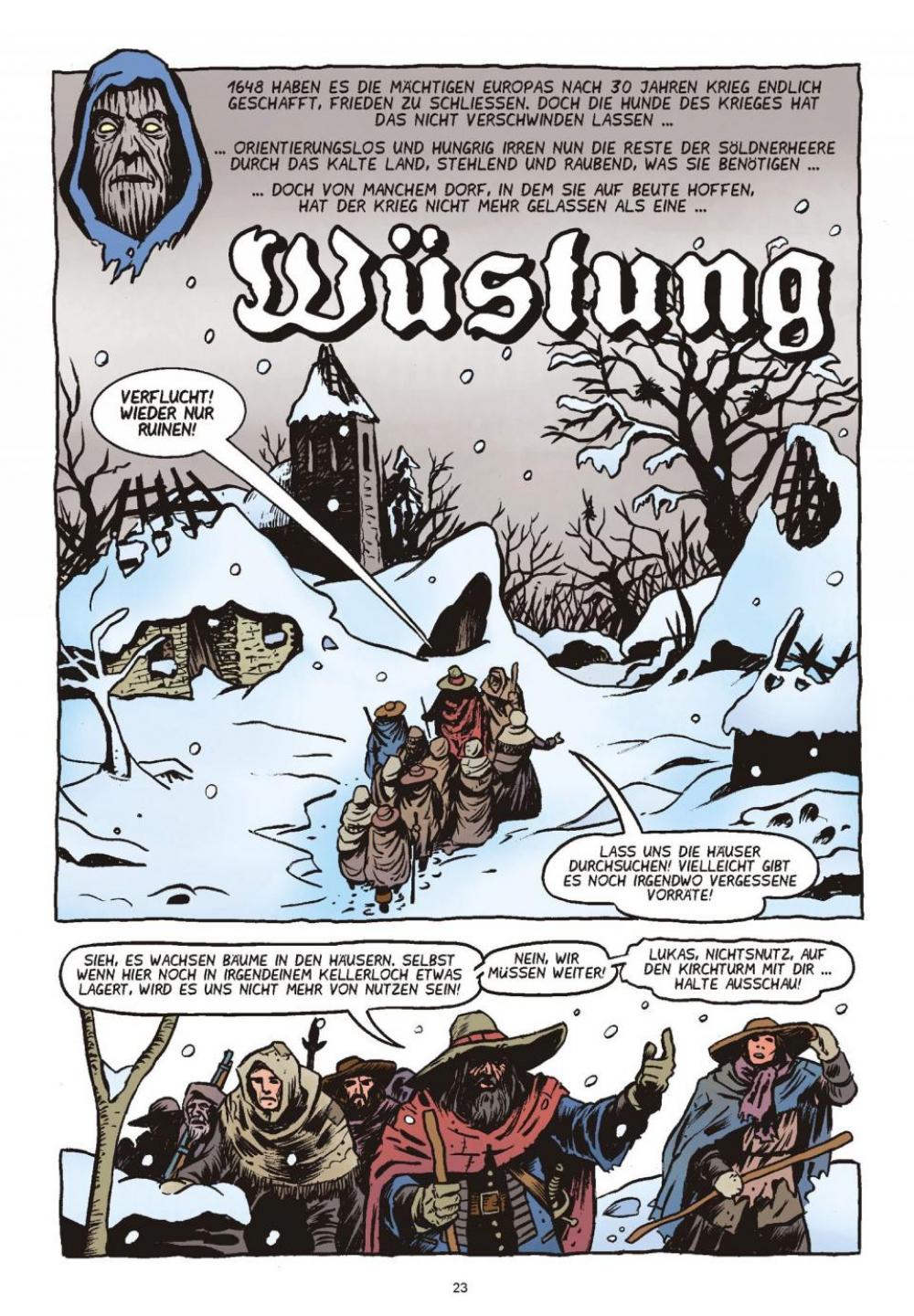 Zum Abschluss geht es in bester Horrorschocker-Manier in die finstere Vergangenheit: Ein Trupp versprengter Söldner streift durch das vom Dreißigjährigen Krieg verwüstete Land. Historischer Horror, wie immer authentisch und gruselig zugleich in Szene gesetzt von Geschichtsspezialist Kurio.
