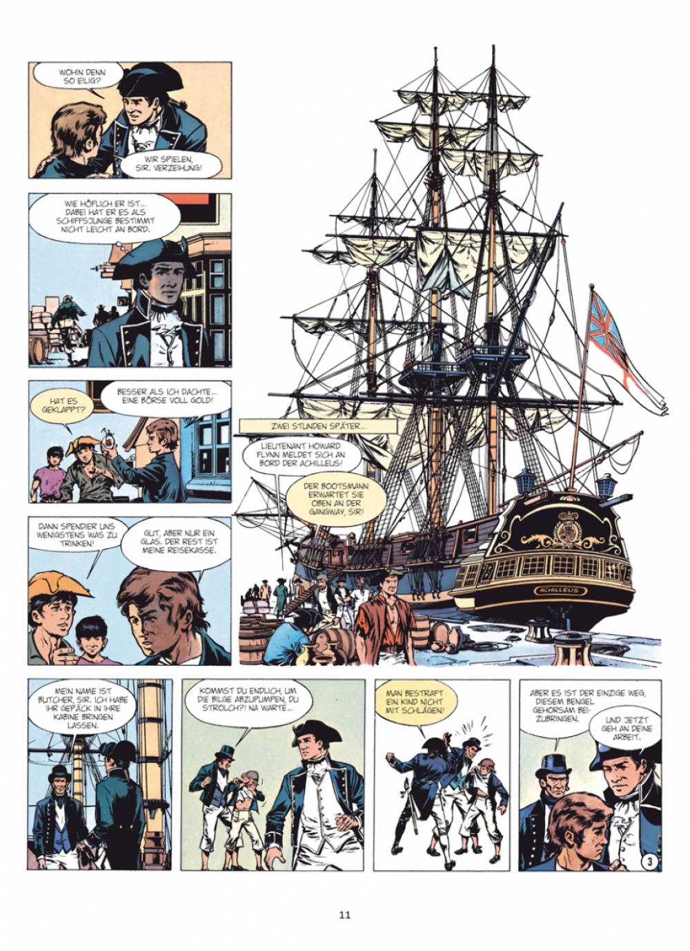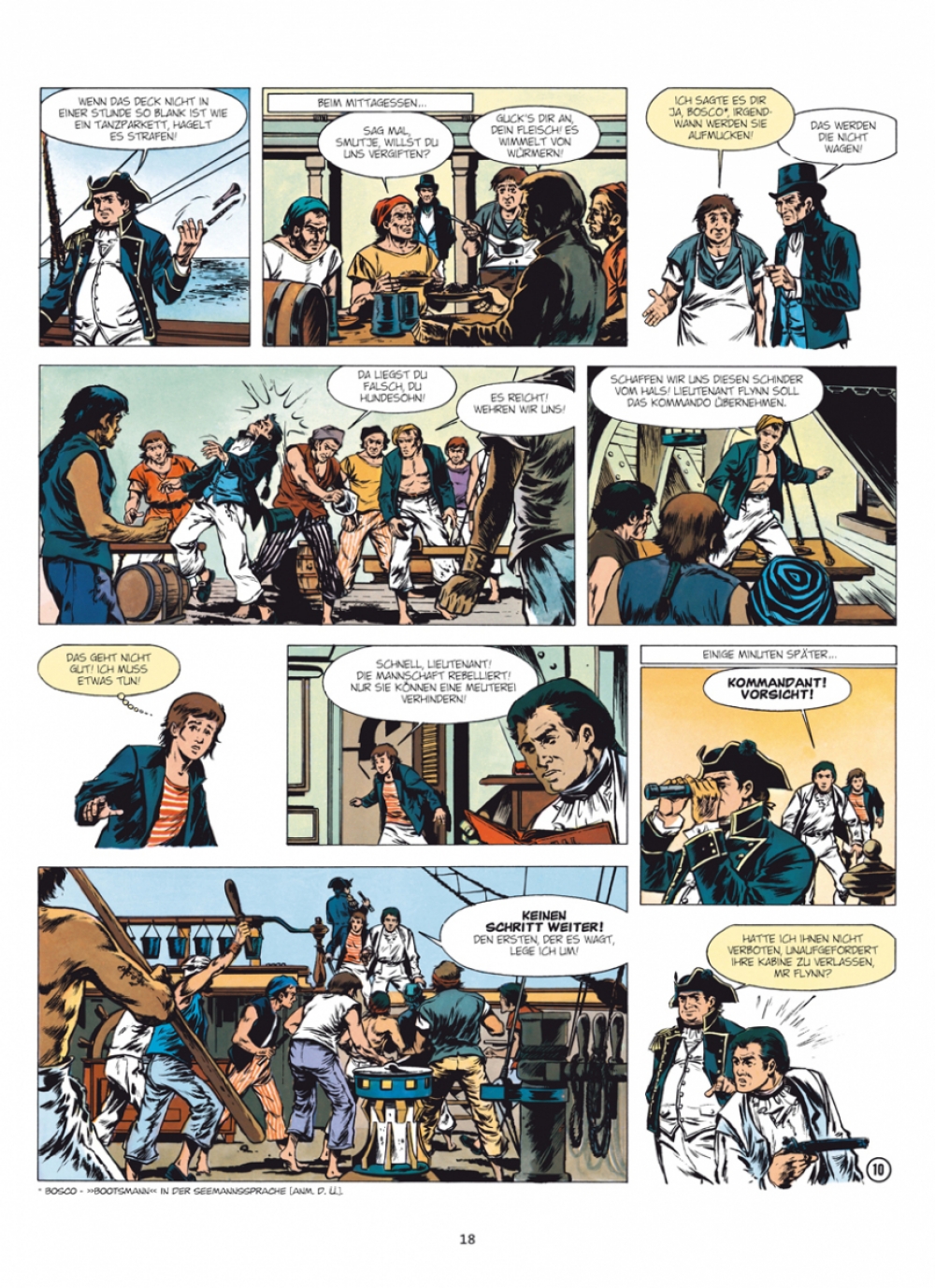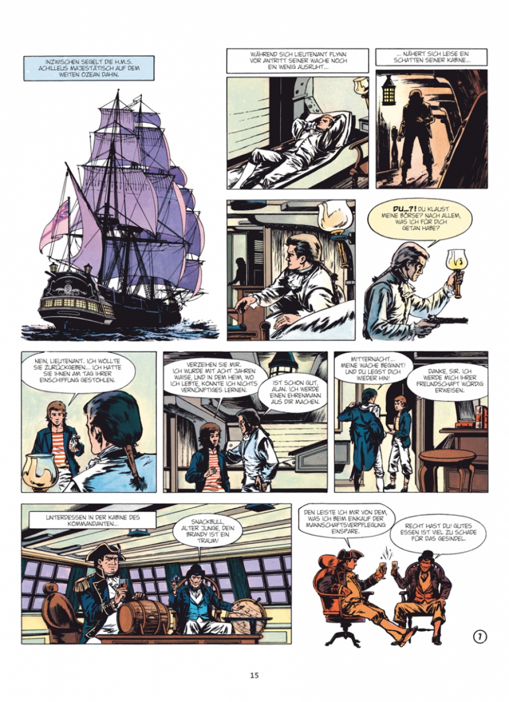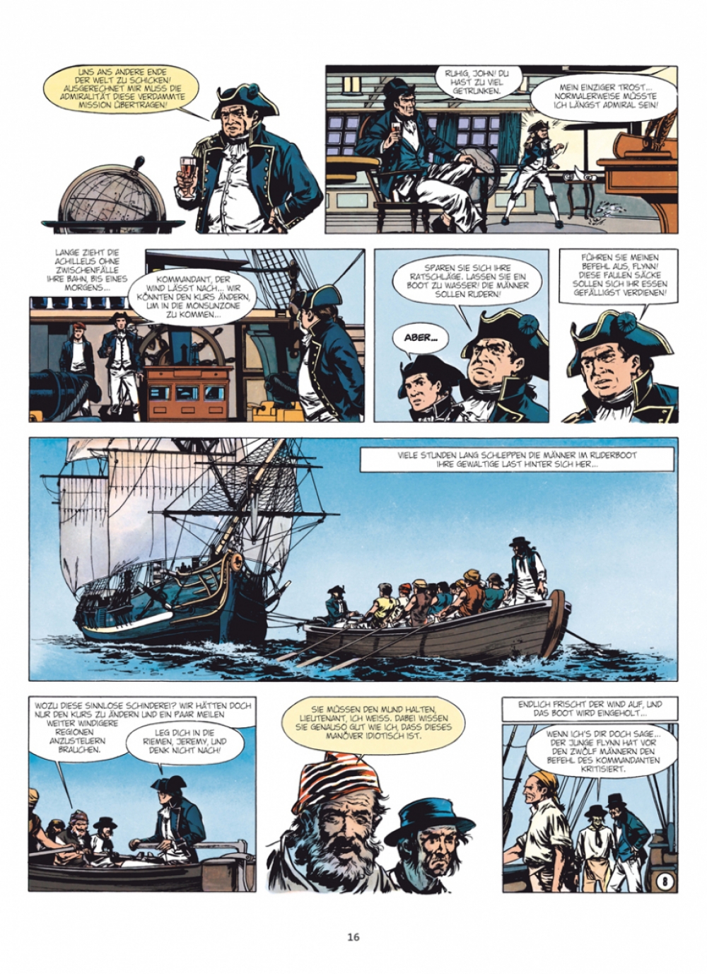 "Im Jahre 1785 trat der frischgebackene Lieutenant Howard Flynn seinen ersten Posten an Bord eines Schiffes der Royal Navy an. Nach einer turbulenten Lehrzeit und einem aufregenden Leben auf hoher See wird er mit einer brandgefährlichen Mission betraut… und der Rest ist Comic-Geschichte.