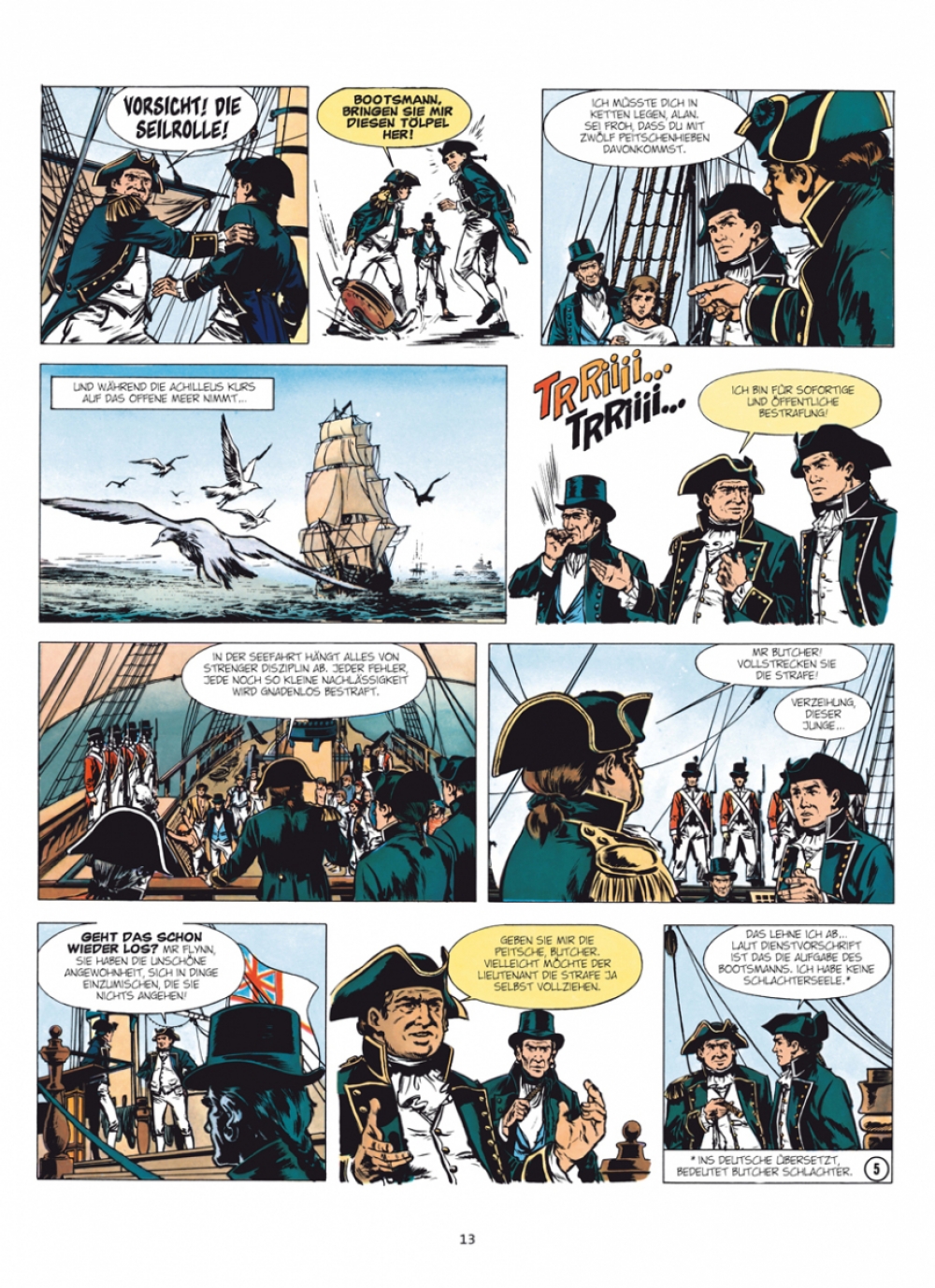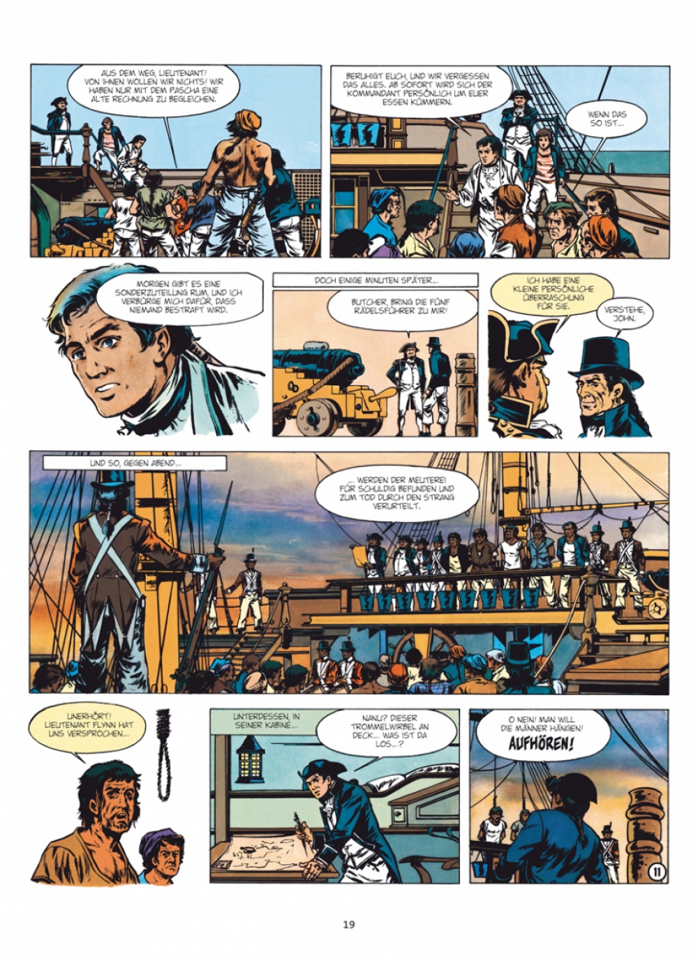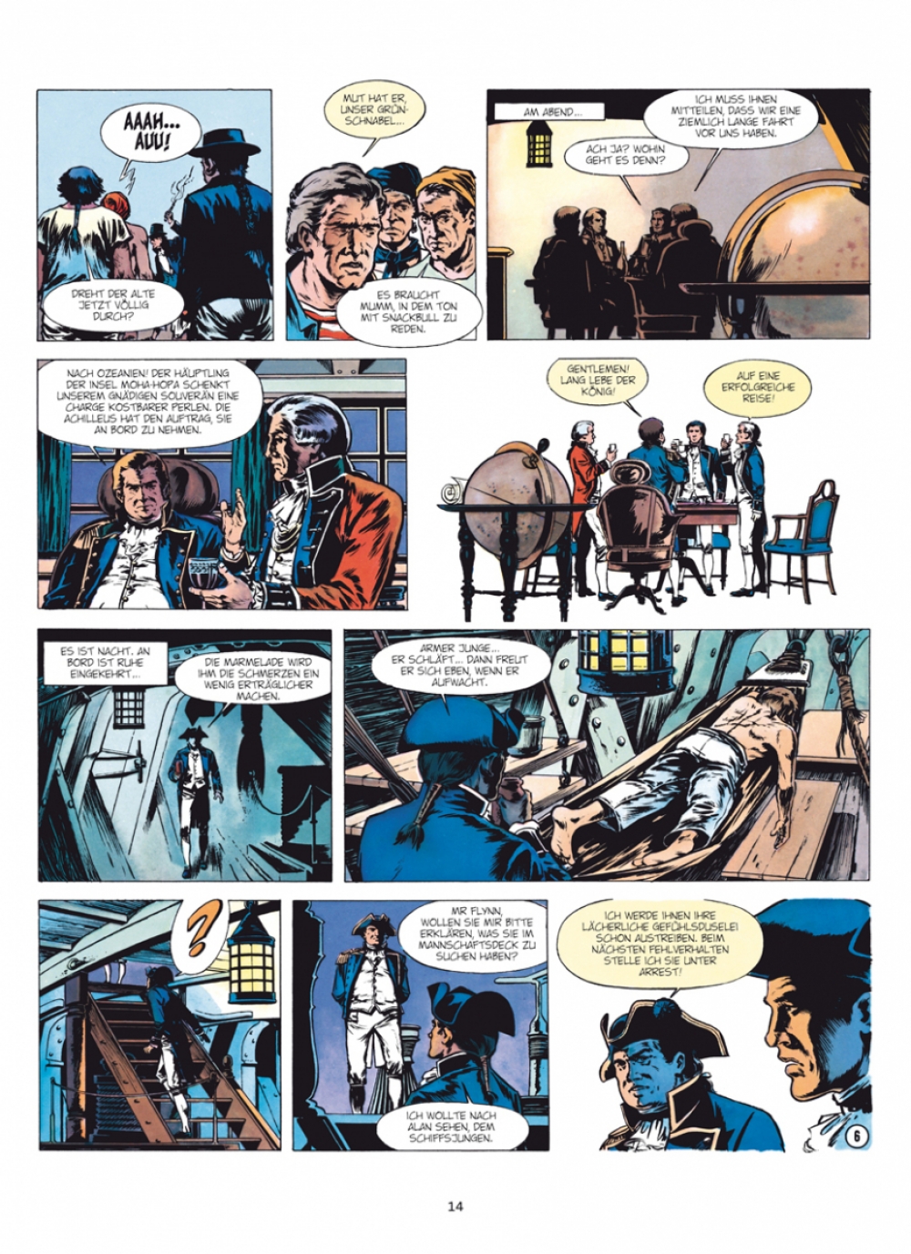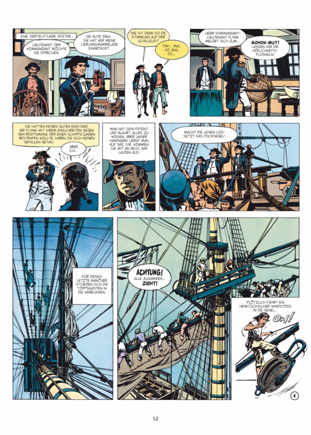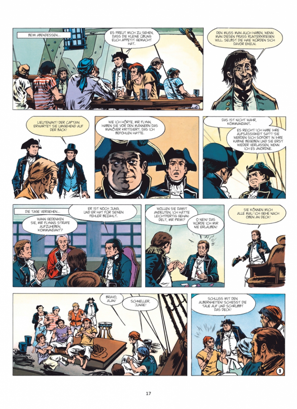 "Im Jahre 1785 trat der frischgebackene Lieutenant Howard Flynn seinen ersten Posten an Bord eines Schiffes der Royal Navy an. Nach einer turbulenten Lehrzeit und einem aufregenden Leben auf hoher See wird er mit einer brandgefährlichen Mission betraut… und der Rest ist Comic-Geschichte.