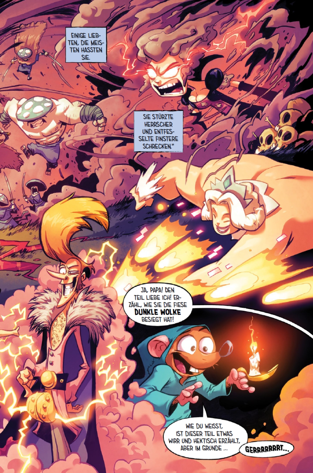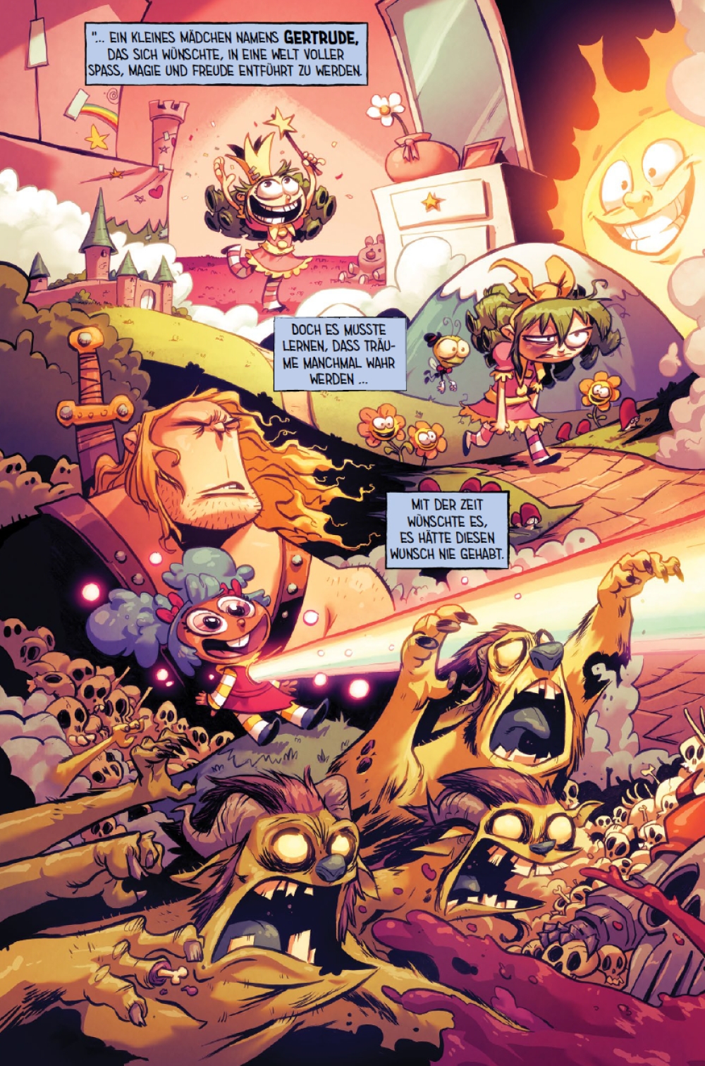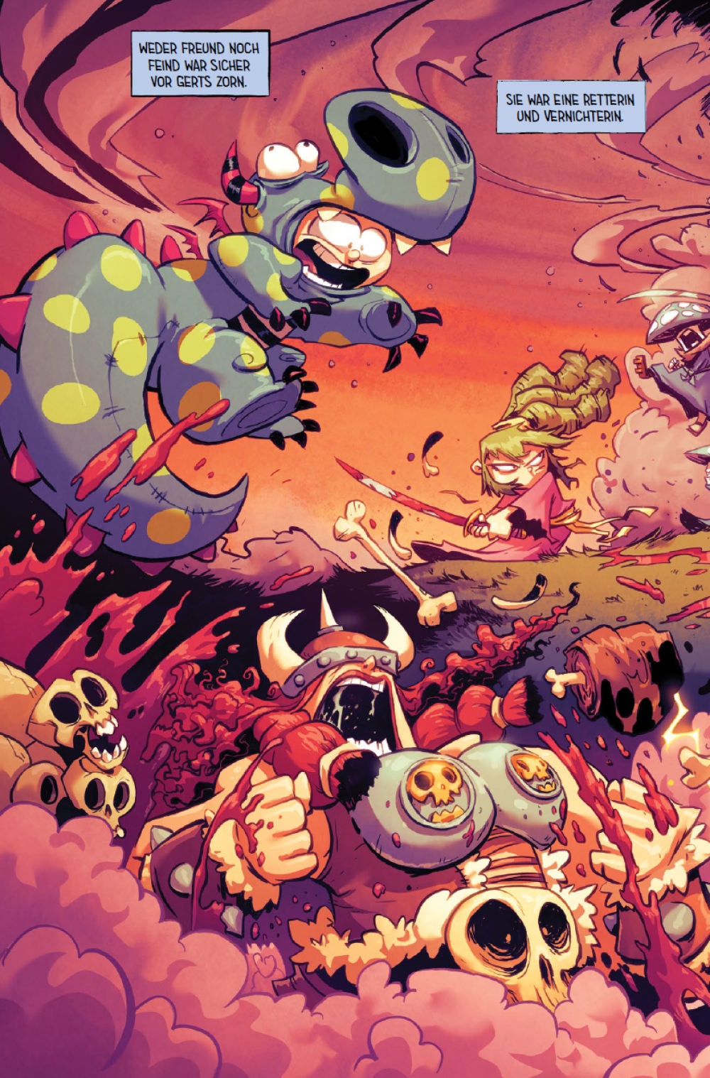 In dieser übergroßen Deluxe-Hardcover-Ausgabe, geschrieben von SKOTTIE YOUNG und illustriert von BRETT BEAN, treffen wir auf eine erwachsene Gert, die auf Jobsuche in der realen Welt ist. Die Stelle, für die sie qualifiziert ist, führt sie zurück an den Ort, den sie hasst … Fairyland. Sie kämpft gegen alte und neue königliche Feinde, Horden von Seeungeheuern, betrunkene Kreaturen und sogar eine Bande von GERTRUDES!