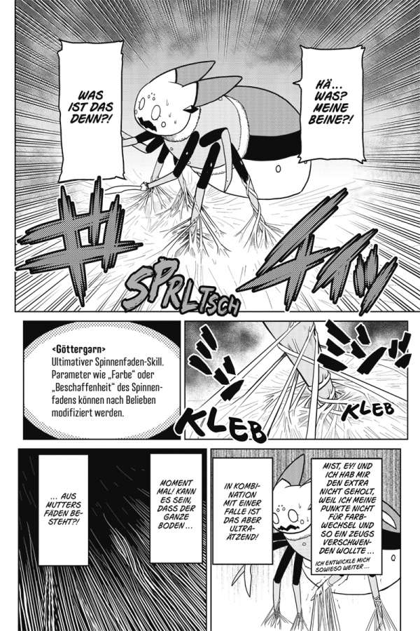 Der Kampf gegen die Mutterspinne ist auf dem Höhepunkt! Kumoko gibt alles, um sich zu wehren – aber es gibt einen riesigen Haken! Die Mutter ist nun einmal ebenso eine Spinne wie Kumoko und logischerweise in all denselben Tricks und Kniffen geübt, die auch Kumoko stets das Leben gerettet haben. Da sitzt Kumoko ganz schön in der Patsche! Ob rechtzeitig Hilfe eintreffen wird …?