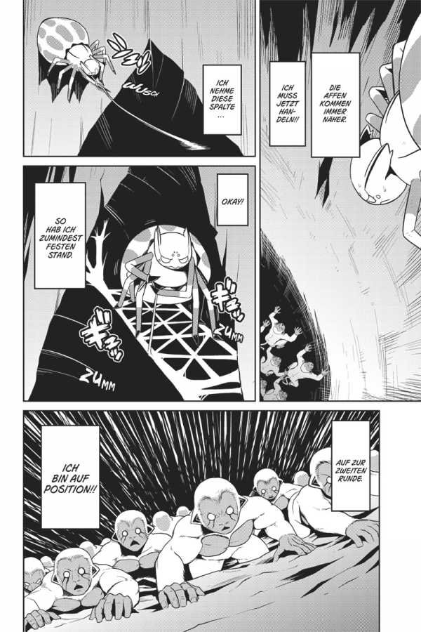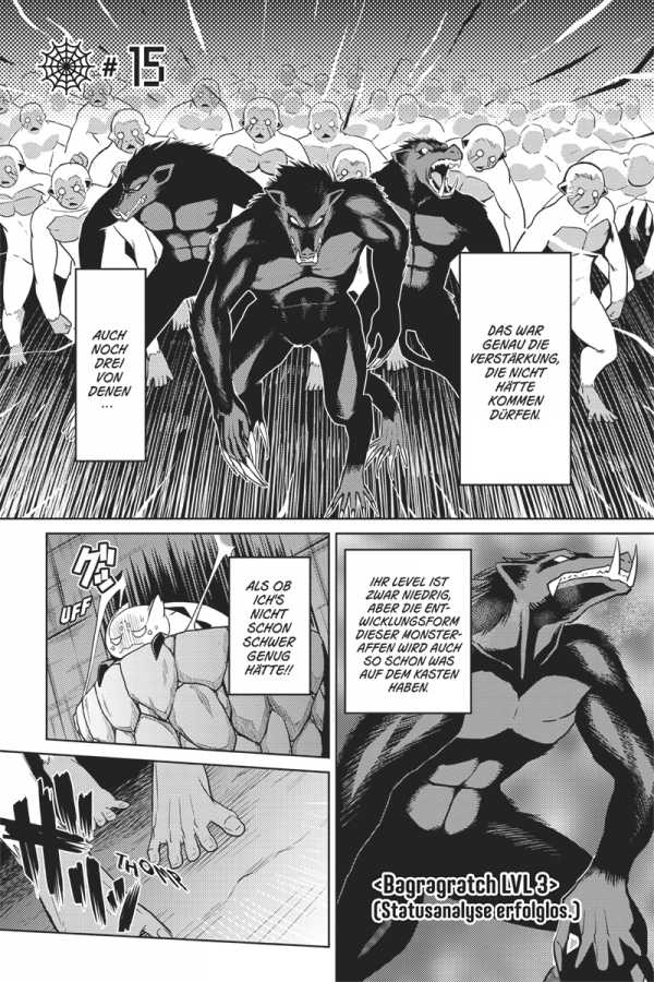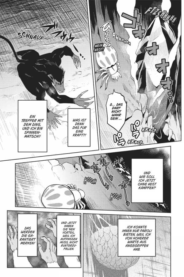 Eben war sie noch eine gewöhnliche Schülerin – nun muss sie in einer Fantasywelt als Spinne überleben. In einem Höhlenlabyrinth tief unter der Erde, in dem überall hungrige Monster lauern, hat sich unsere Heldin nach langen Mühen ein kleines Nest gebaut, um endlich mal zur Ruhe zu kommen.