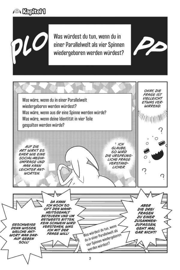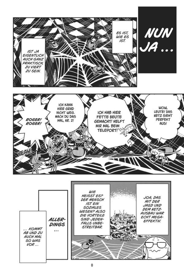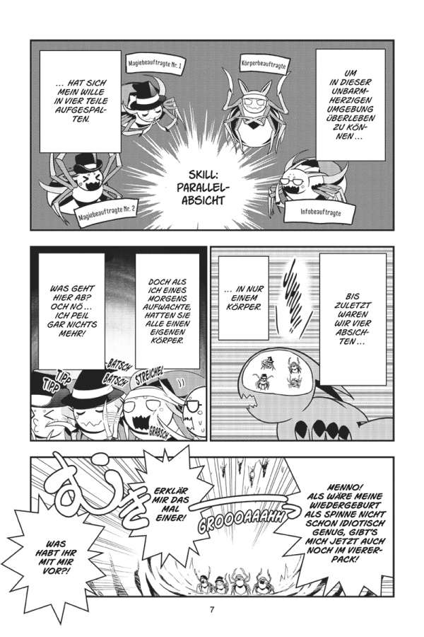 Als kleines Krabbeltier in einer fremden Welt wiedergeboren, von gefräßigen Monstern gejagt, dem Tod wieder und wieder nur knapp entkommen – Kumoko hat keine freie Minute! Oder doch?! Seit sie mit Hilfe eines besonderen Skills ihre Denkfähigkeit in mehrere Persönlichkeiten aufteilen kann, ist Kumoko nicht mehr so allein. Doch als alle Persönlichkeiten sich plötzlich in eigenen Körpern wiederfinden, ist das Chaos vorprogrammiert! Eine Heldin, vier Spinnen und unendlich viele dumme Gedanken … das Abenteuer von Kumoko und ihren Schwestern beginnt!