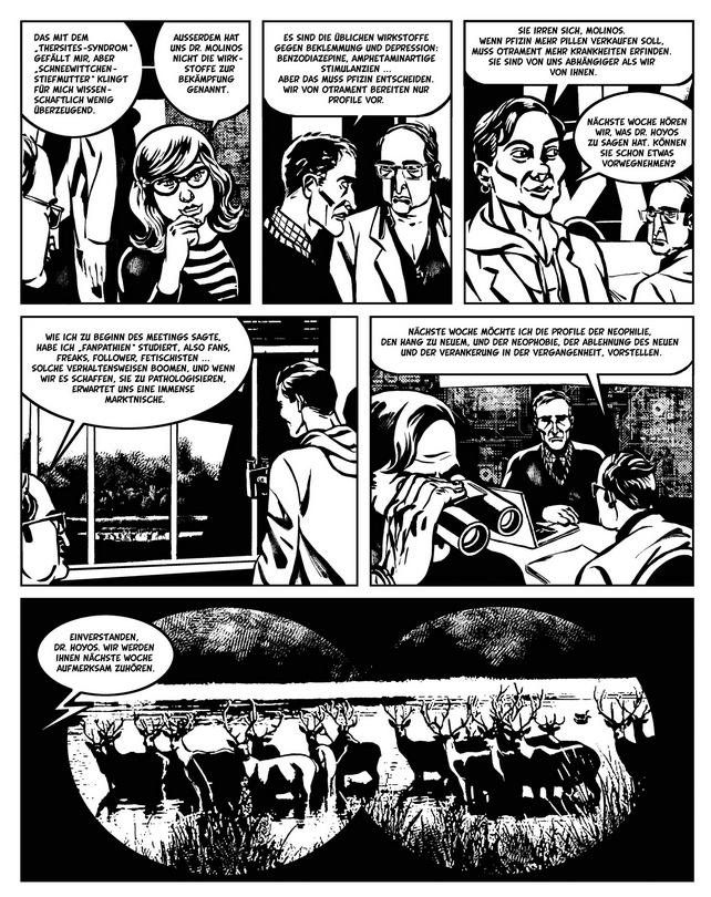 Kategorien, aus denen neue Krankheitsbilder entstehen sollen, um den Konsum der Medikamente zu fördern. Er hat Alpträume und flüchtet sich in die Erforschung der Psyche anderer, um seine eigene zu