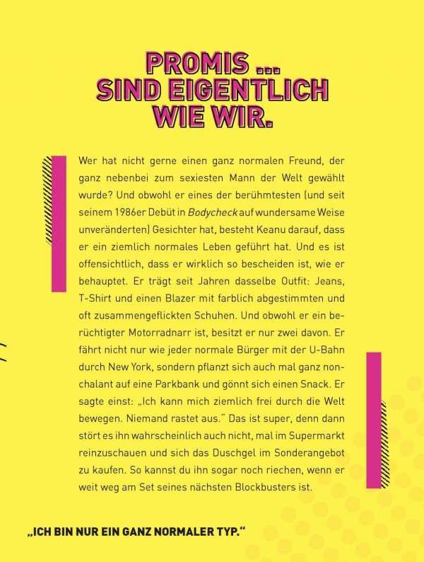 Dieses Büchlein, zum Teil Biografie, zum Teil verträumte Erzählung, hilft dir bei der Vorstellung, dass der Boyfriend des Internets DEIN Boyfriend ist. Lerne deinen Schwarm durch liebevoll typografisch gestaltete Zitate noch besser kennen, darunter Perlen wie „I don’t get out much.“ und „Life is good when you have a good sandwich.“ IF KEANU WERE YOUR BOYFRIEND ist die Hymne auf den Mann, den Mythos, den Wow: Keanu Reeves.
